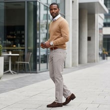- Brown or tan leather loafers, brogues, or clean white sneakers