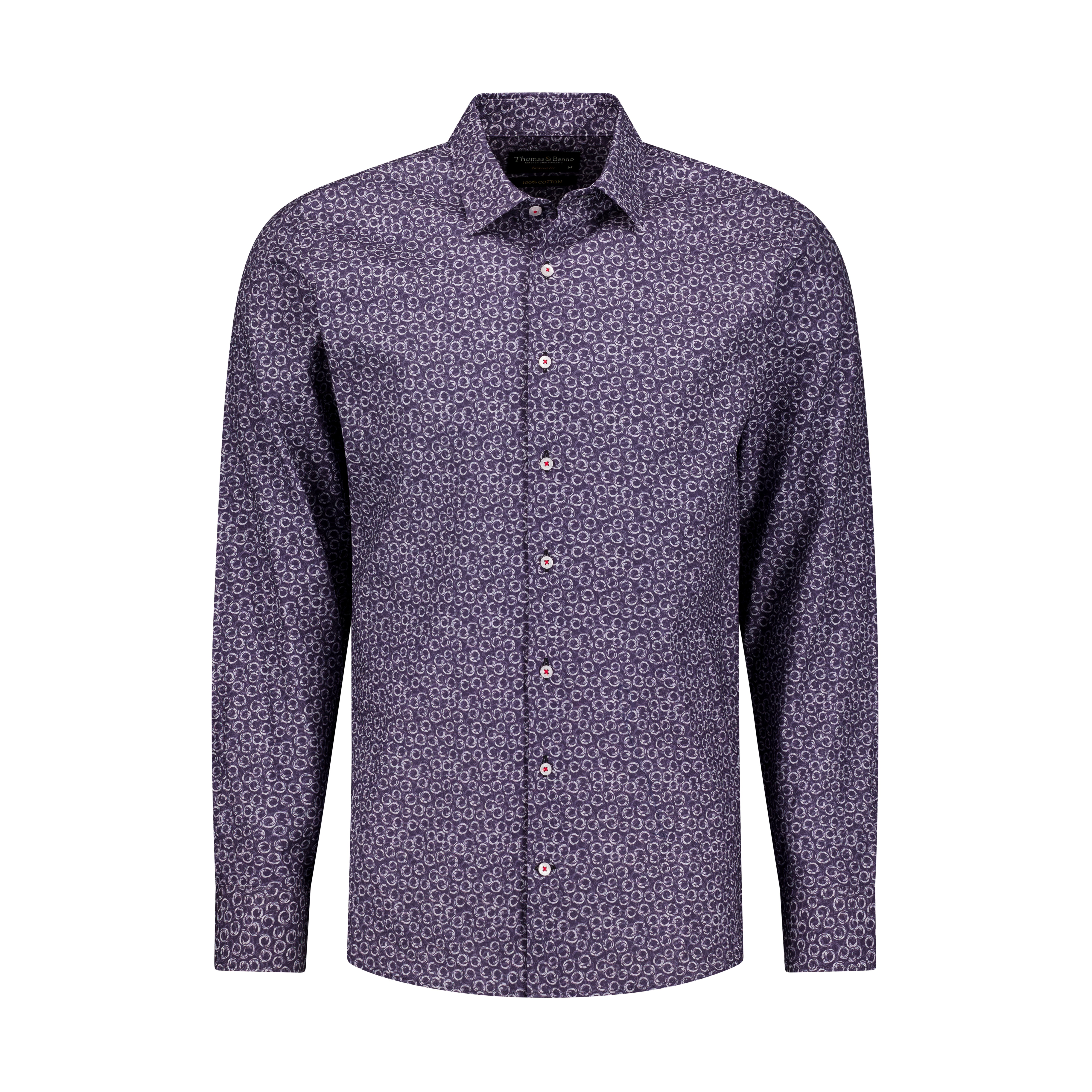 The Thomas & Benno Midnight Swirl Print Shirt is a statement piece for the modern wardrobe. Crafted from 100% cotton, it offers breathable comfort and a refined tailored fit. The semi cutaway collar ensures versatility, while the single cuffs maintain a sleek, understated look.