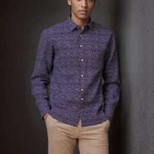 Tuck into tailored navy or charcoal trousers and add a slim leather belt. A solid blazer in navy or black will complement the shirt without clashing. - Evening Sophistication
