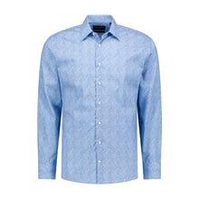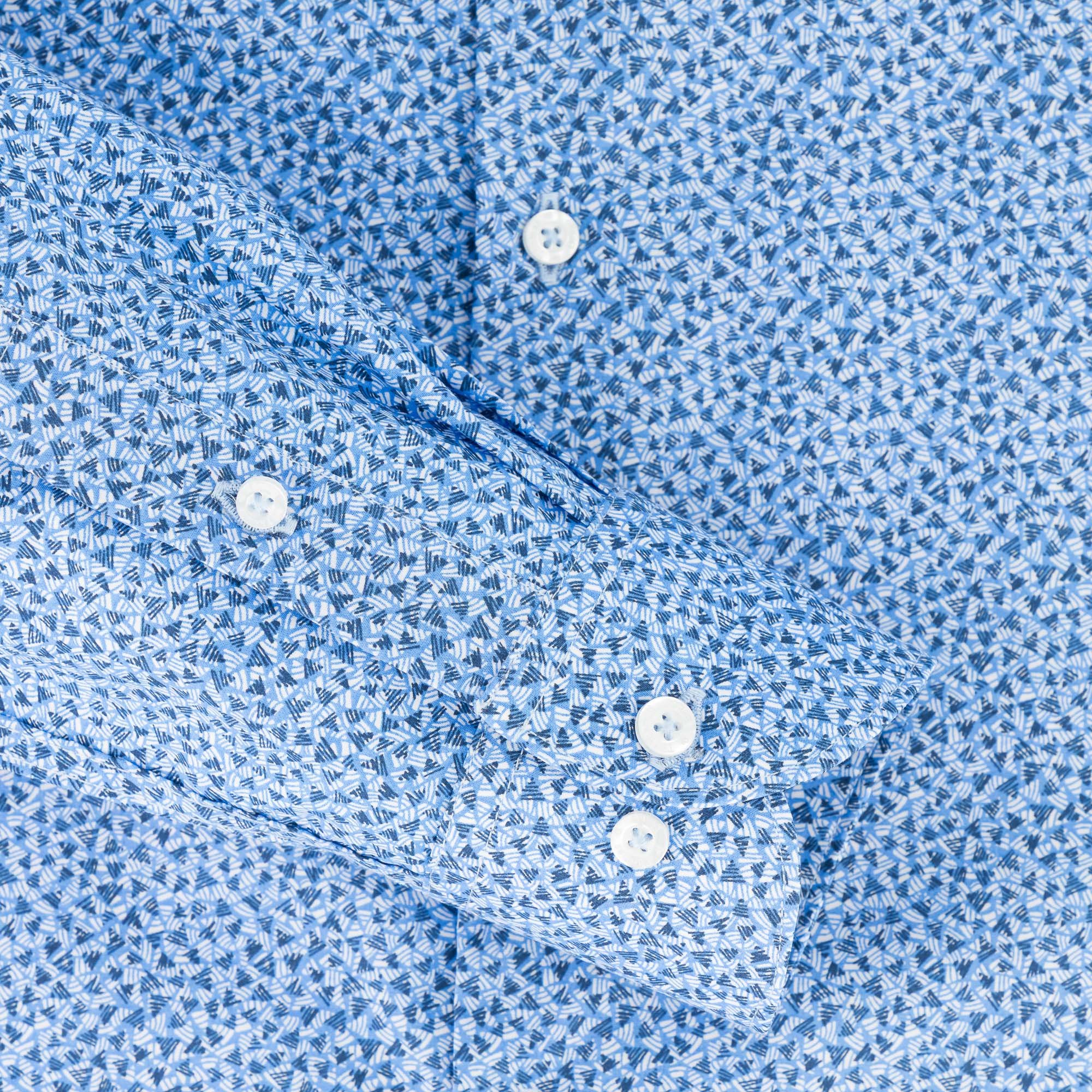 Navy and Light Blue Abstract Print Cotton Dress Shirt | Tailored Fit