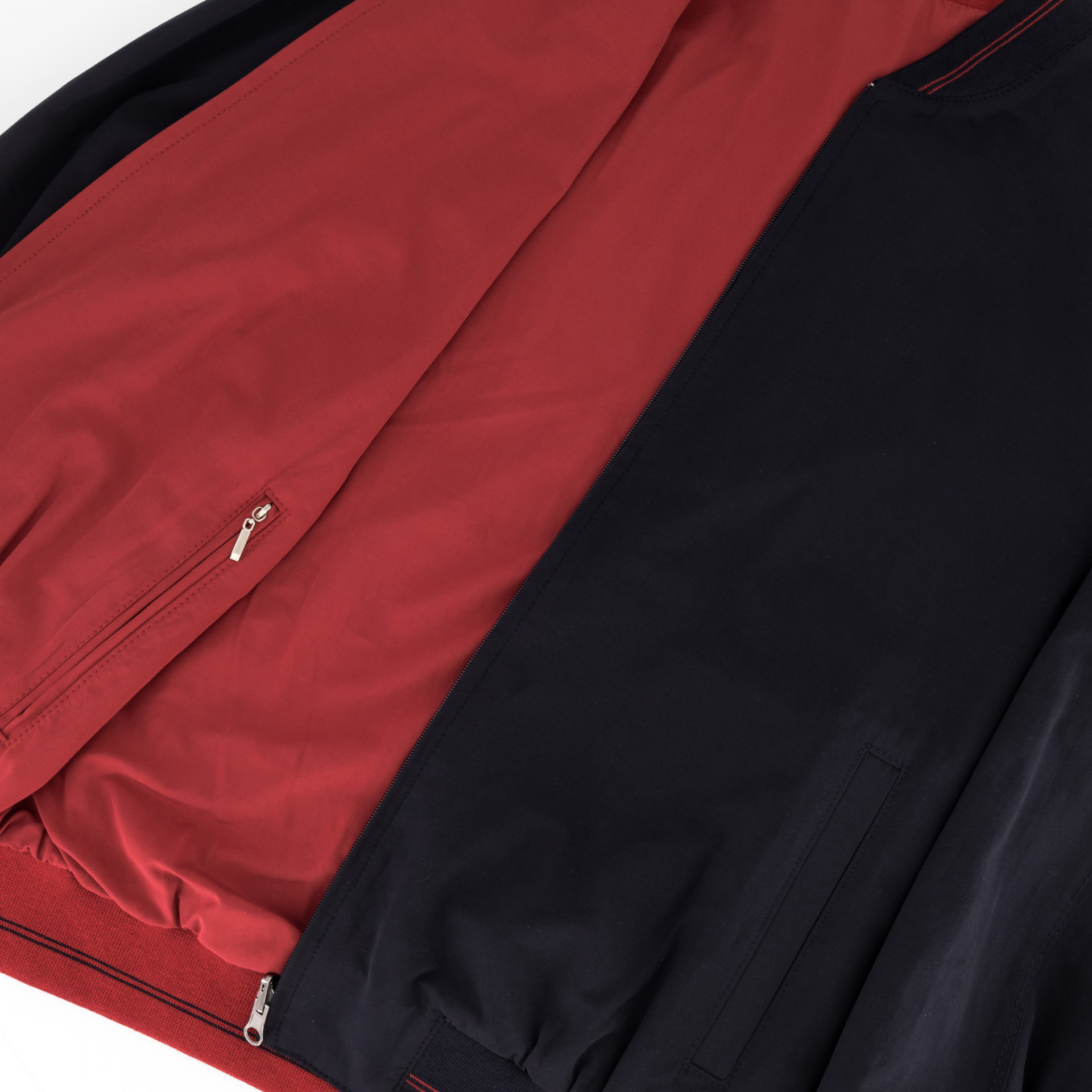Experience ultimate versatility with this high-quality reversible bomber jacket, made from 100% cotton. Featuring a stylish navy and bordeaux colour scheme, tailored fit, and elasticated ribbing for added comfort. The front zipper is designed for convenience and durability. Perfect for any casual or smart casual occasion.