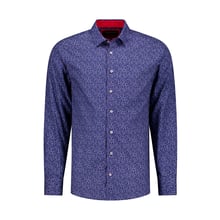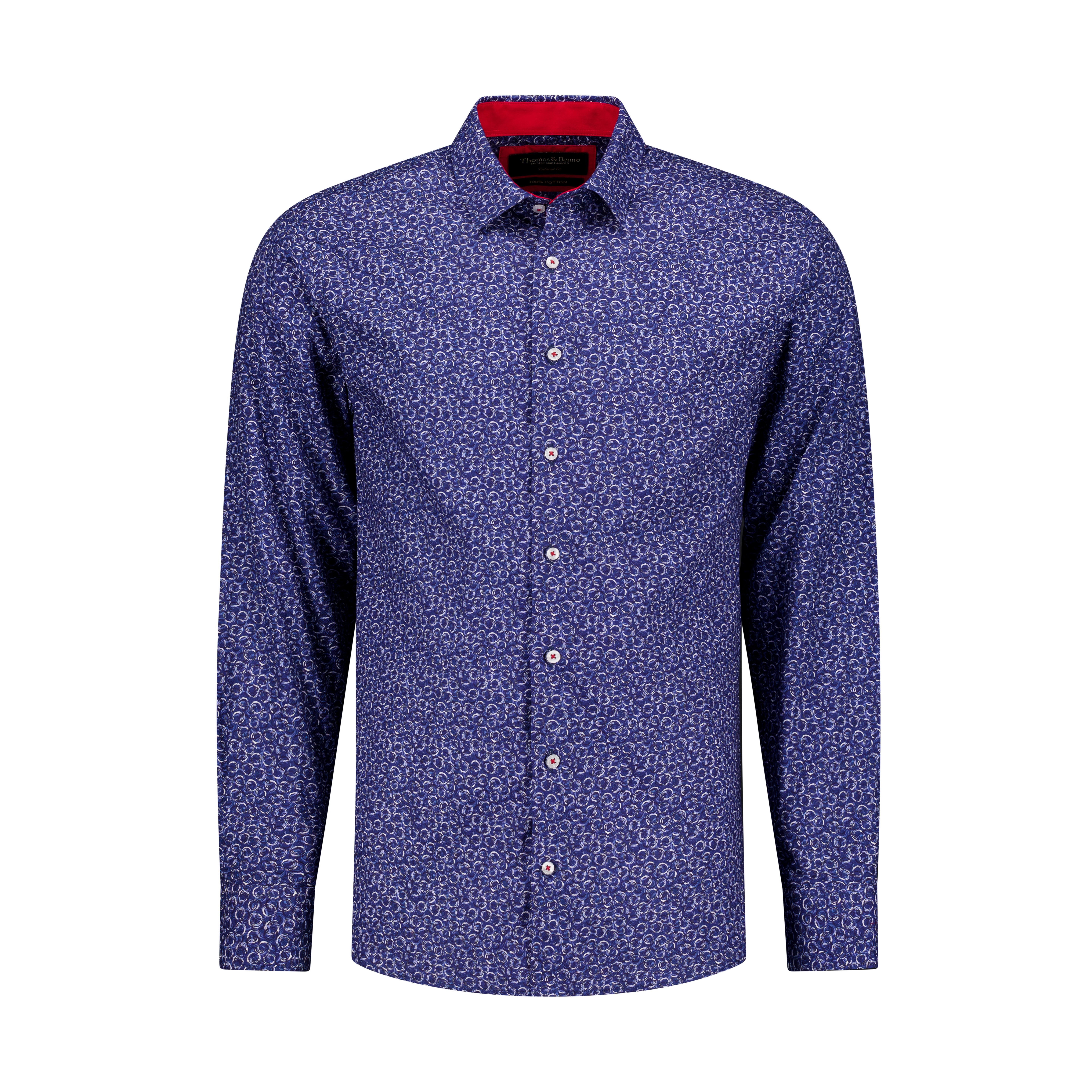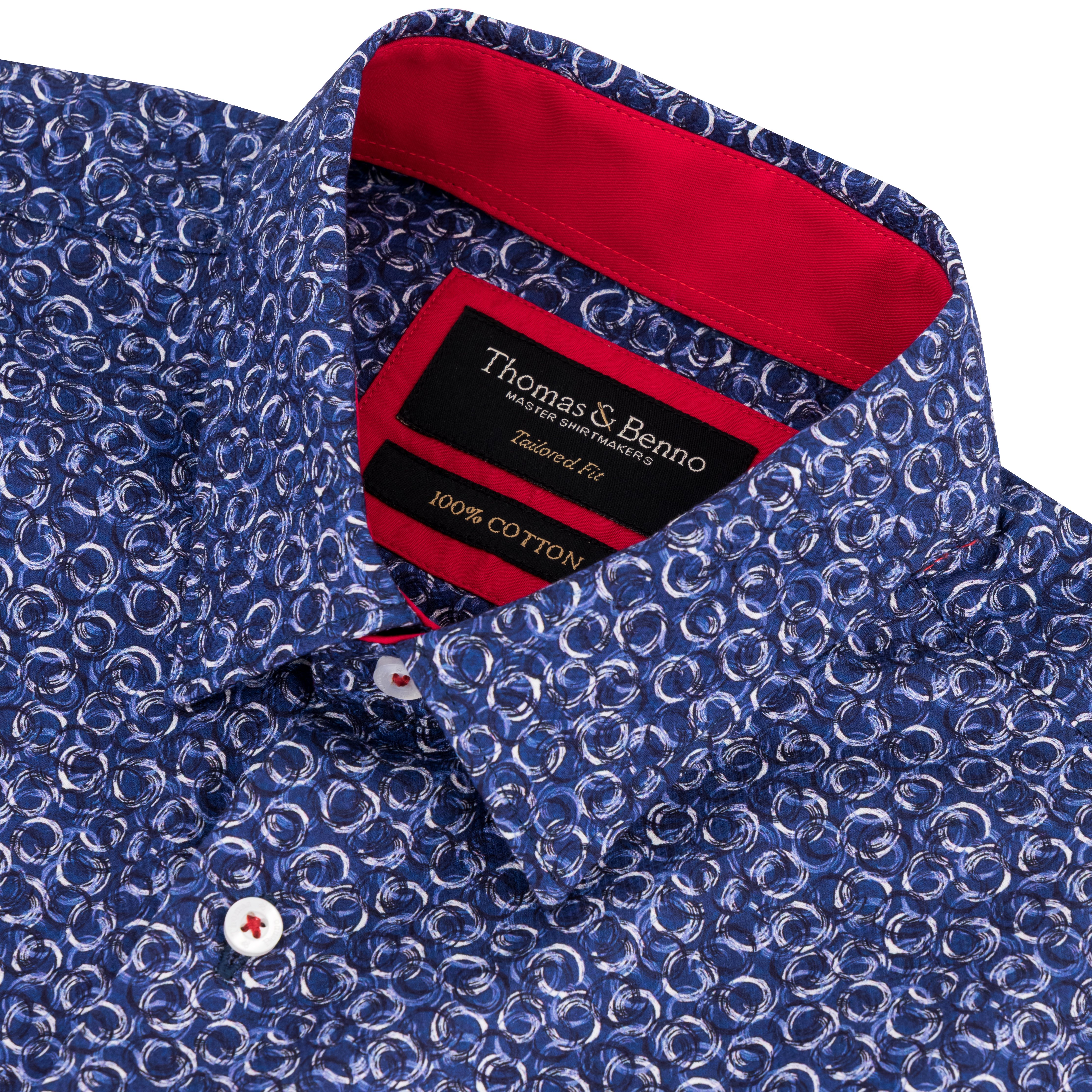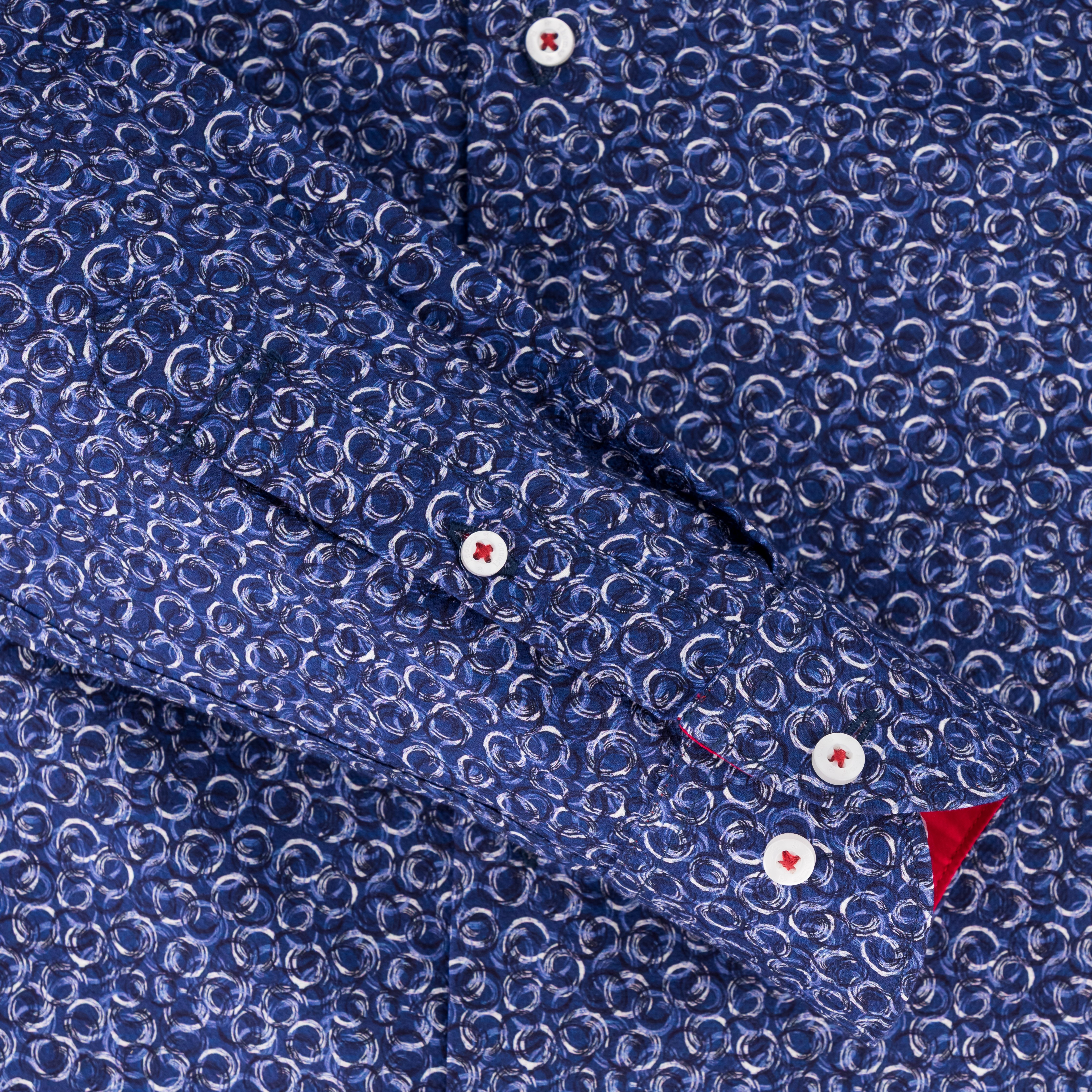 Navy Circular Print Shirt with Red Trim | Tailored Fit