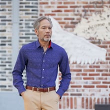 A classic watch and minimal accessories will complement the shirt’s bold trim and patterned design without overpowering it. - Layering Option