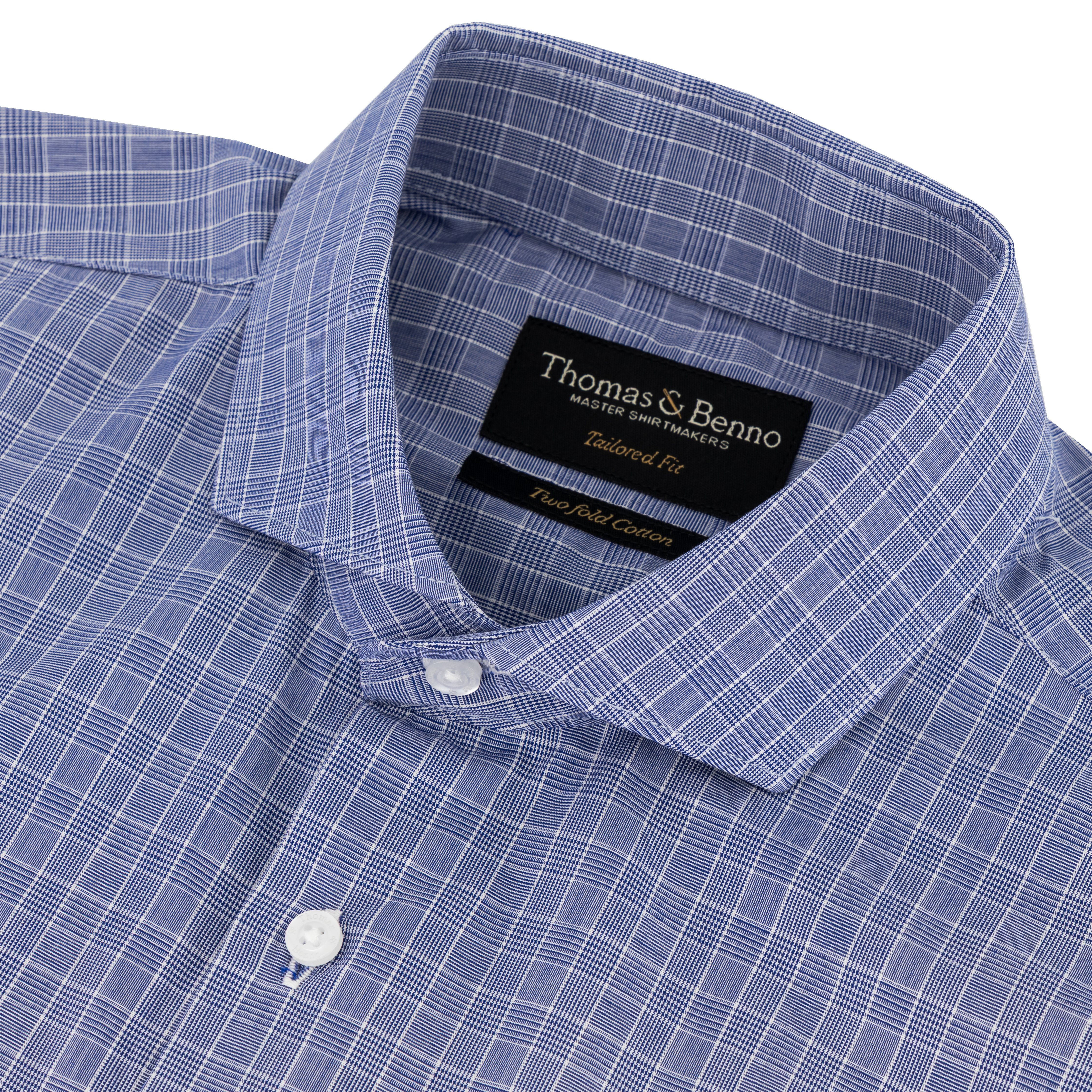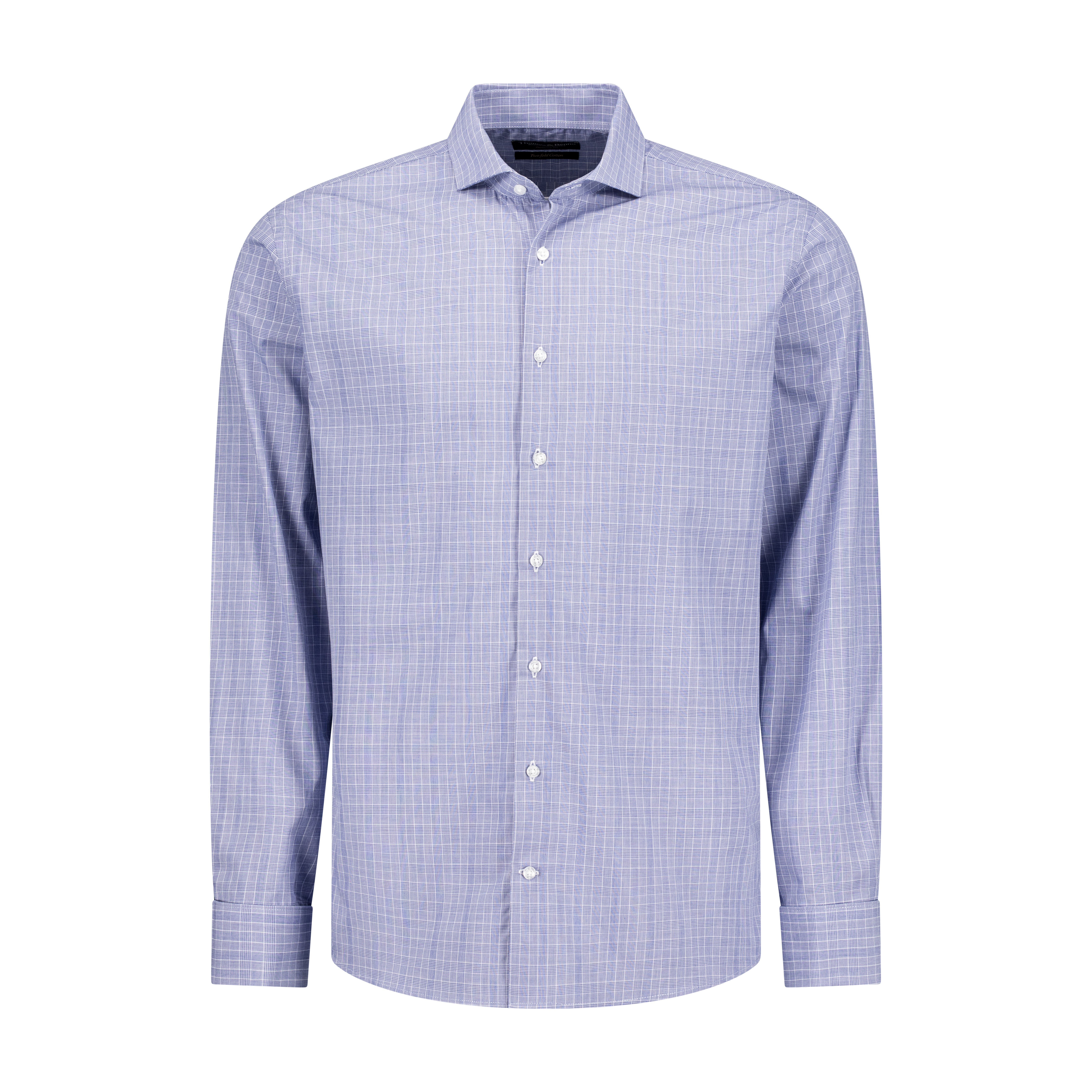 Crafted from 100% premium cotton, this navy houndstooth check dress shirt offers a refined blend of style and comfort. The full cutaway collar, complete with removable collar stays, ensures a sharp, structured appearance suitable for both formal and professional settings. Double cuffs add a touch of elegance, perfect for pairing with cufflinks. Designed with a tailored fit, French side seams, and armholes, this shirt provides exceptional comfort and durability. Side gussets reinforce its structure, while the houndstooth pattern adds subtle sophistication. Machine wash at 30°C and iron while damp for a pristine finish; avoid tumble drying to preserve quality. Ideal for the discerning gentleman seeking versatile, high-quality formalwear.