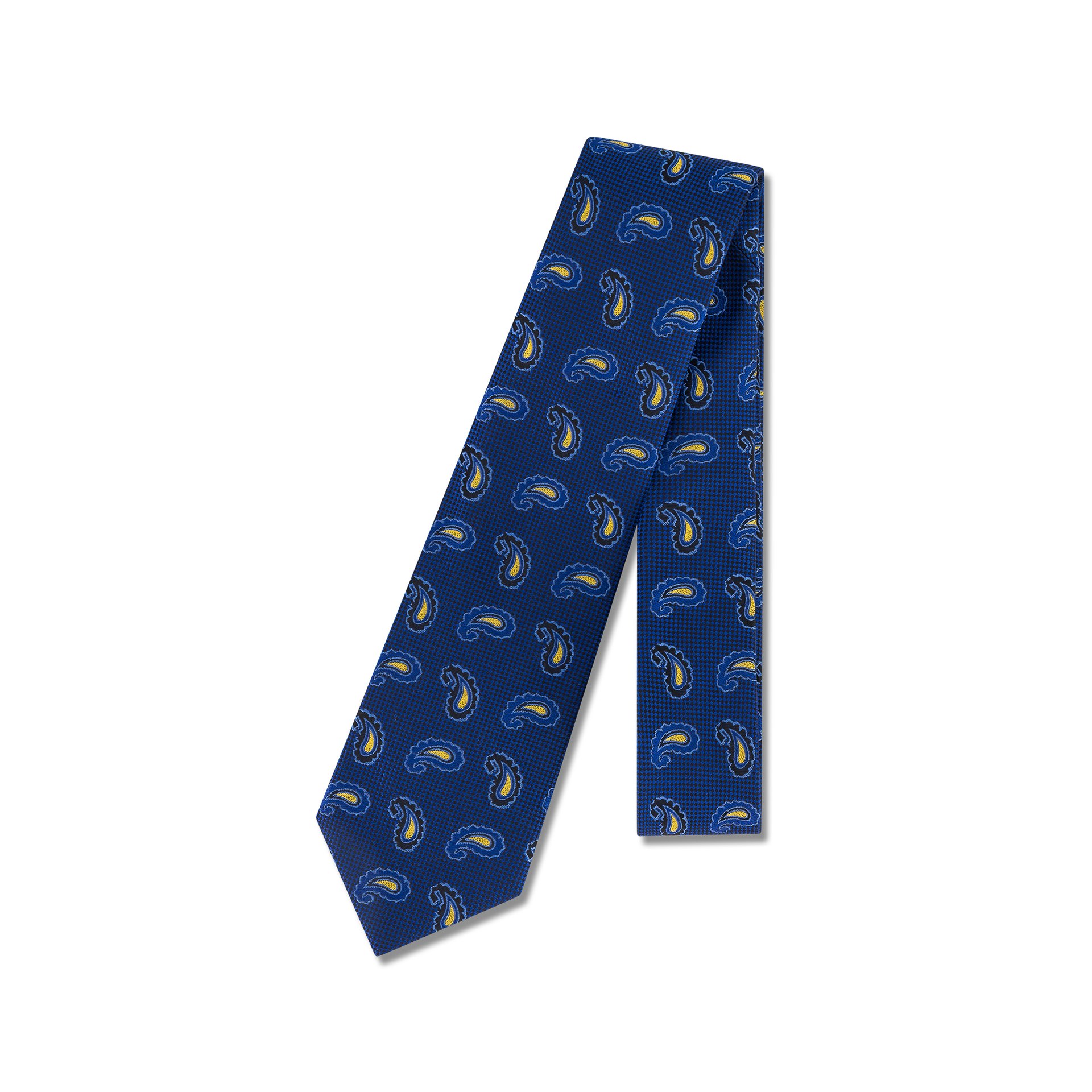 Crafted from luxurious 100% silk, this Thomas & Benno tie features a distinguished paisley design in rich shades of navy and blue, accented with subtle golden tones. The refined pattern and deep colour palette create a tie suited to the discerning gentleman who values understated sophistication.
