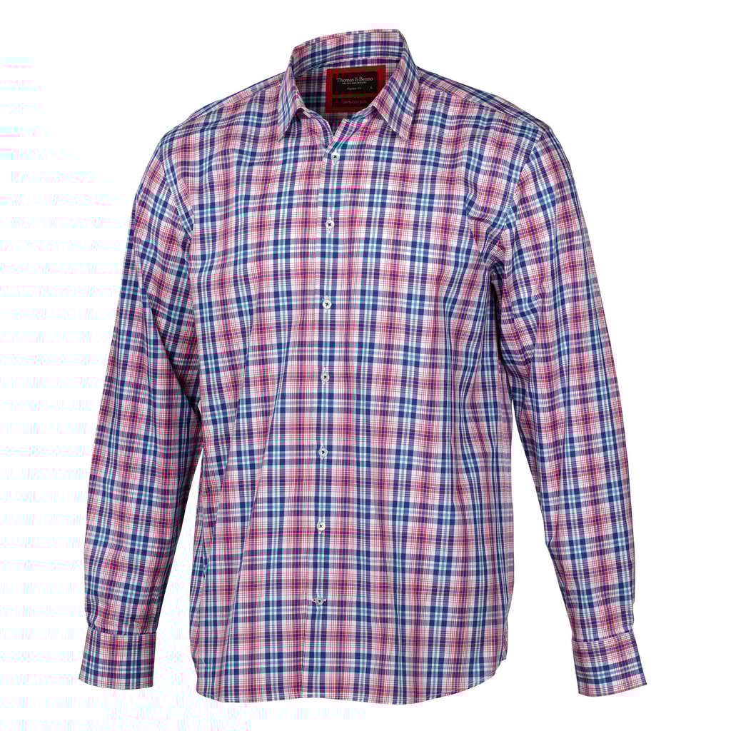 Elevate your style with this navy pink check shirt, featuring a regular fit and semi cut away single cuff. Complete with removable collar stays for a sharp look that lasts. Perfect for making a statement at work or stepping up your casual attire.