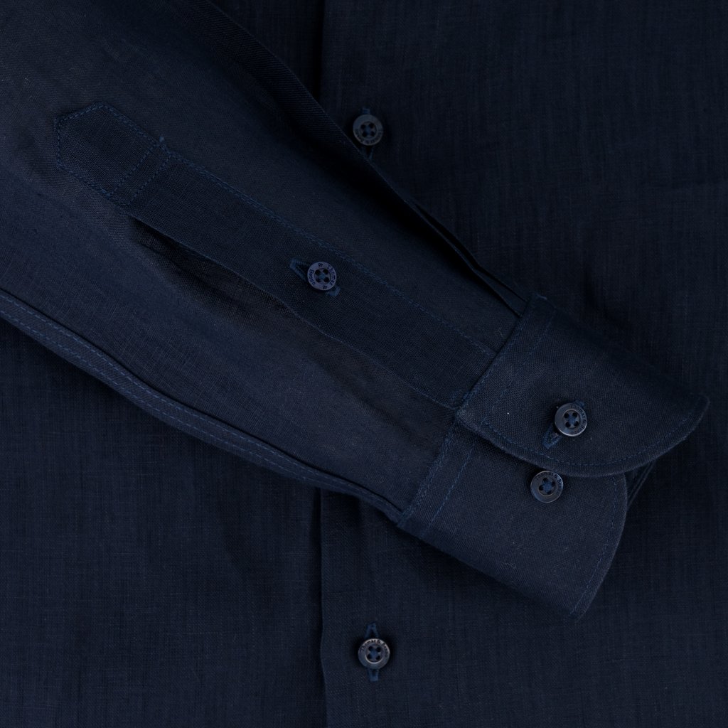 Navy Soft Collar Pure Linen Shirt | Tailored Fit