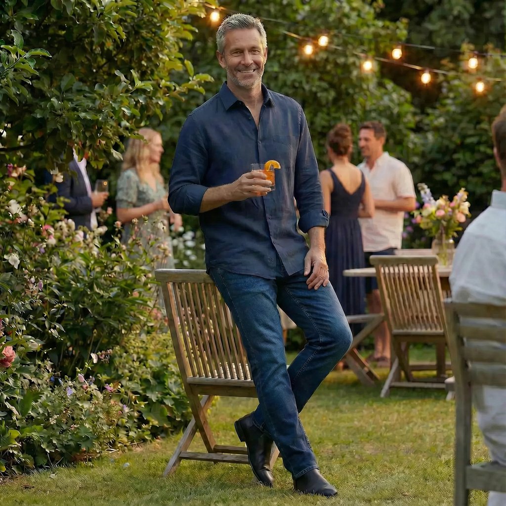 - Style with the collar open for a relaxed, refined feel.
