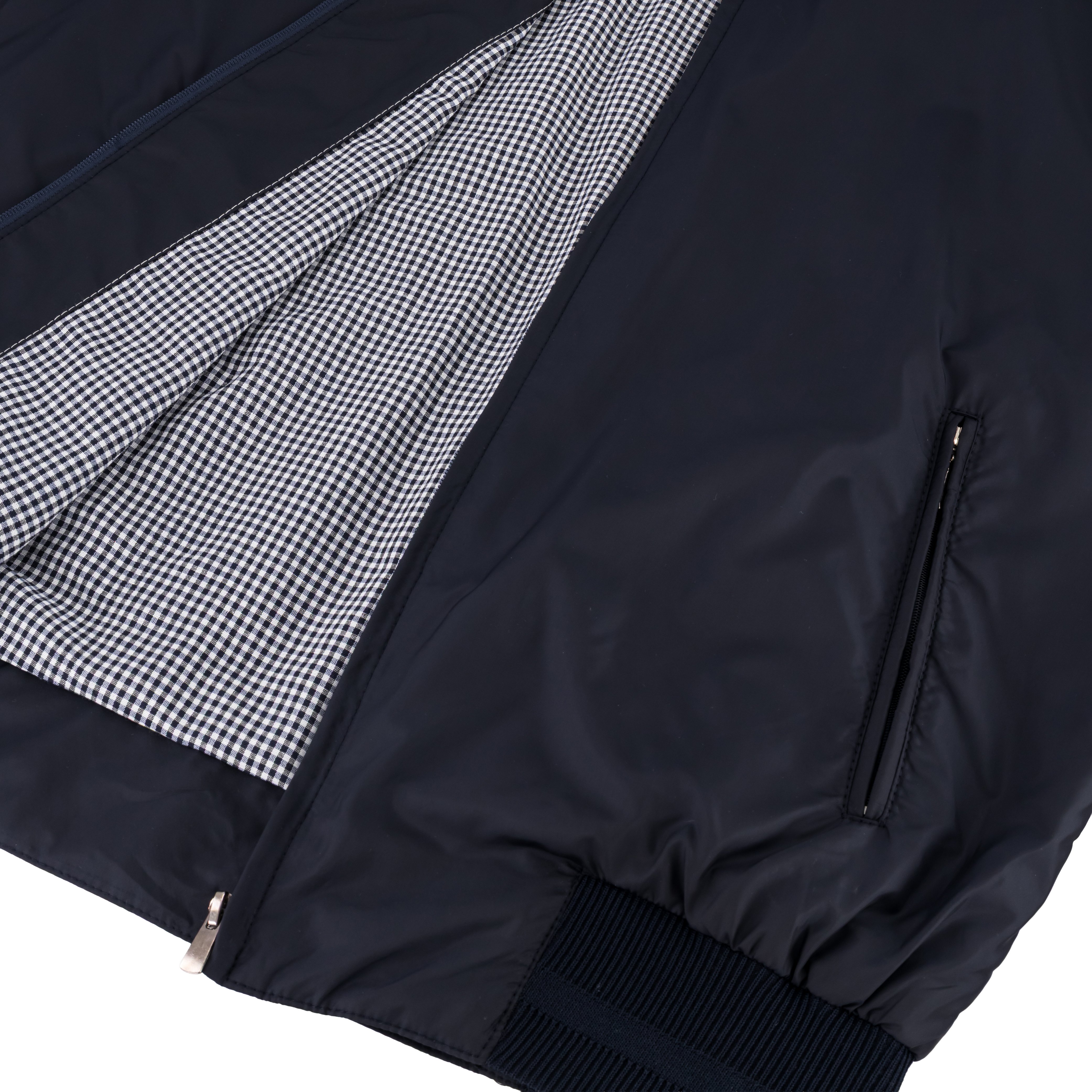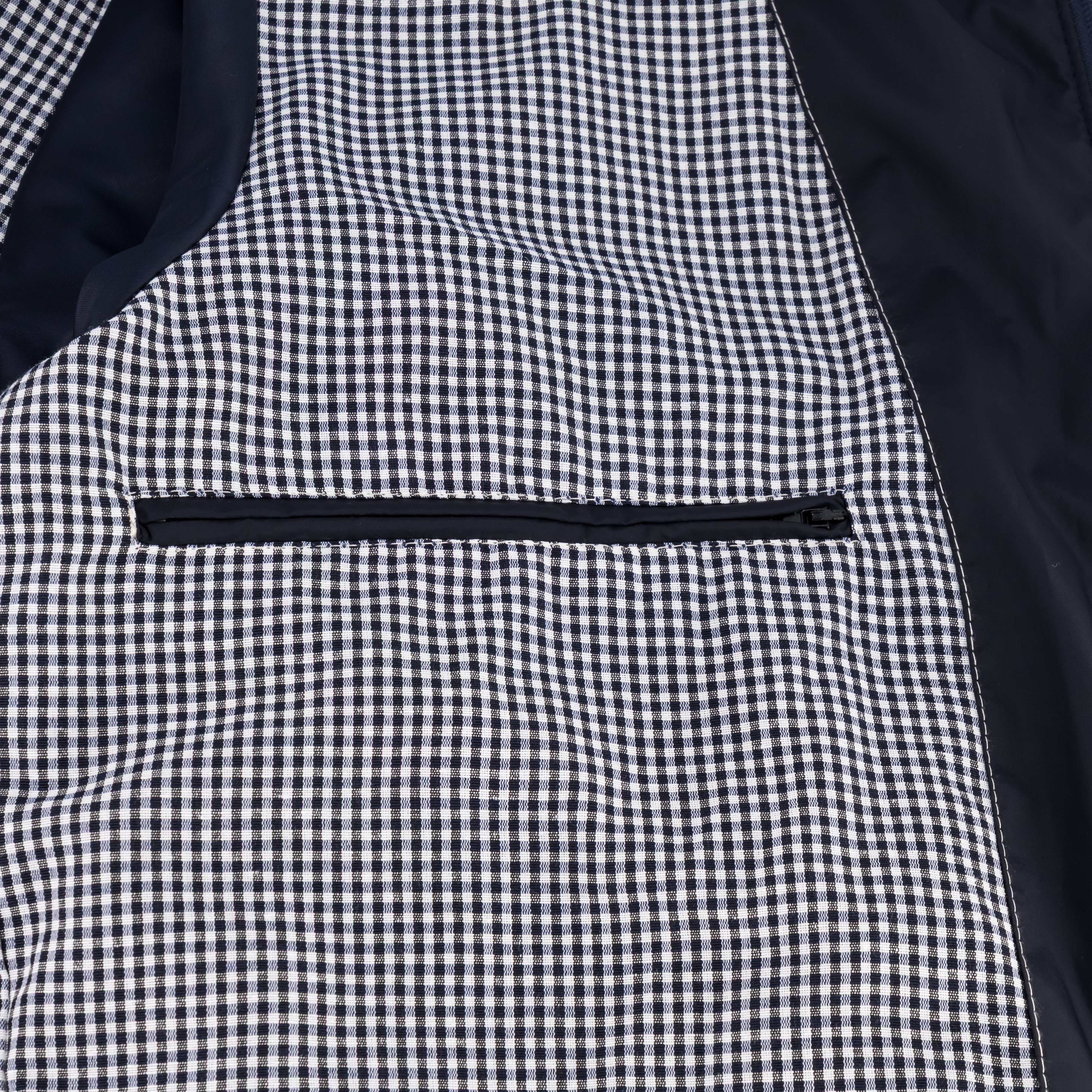 Inside, the jacket is finished with a sophisticated black‑and‑white micro‑check lining — a signature Thomas and Benno detail that elevates a functional piece into something distinctly stylish. The ribbed hem maintains a sharp shape, and the secure zip pockets keep essentials safe on the go.