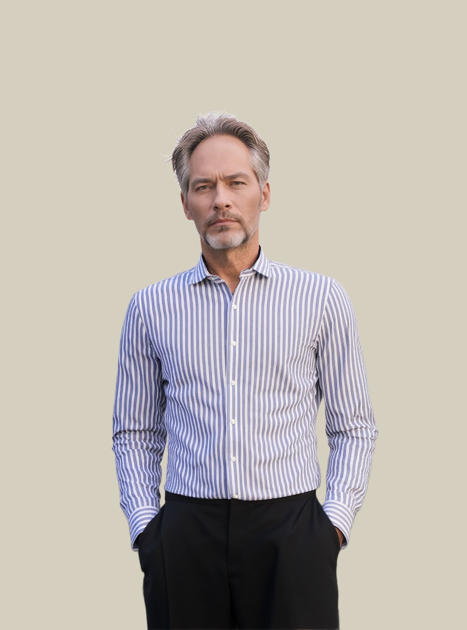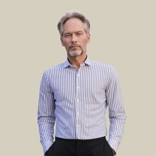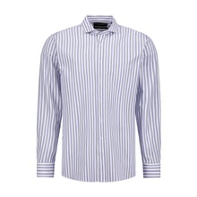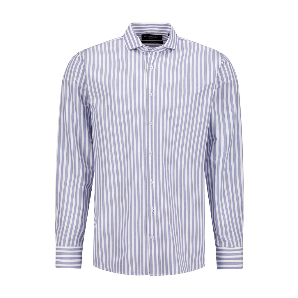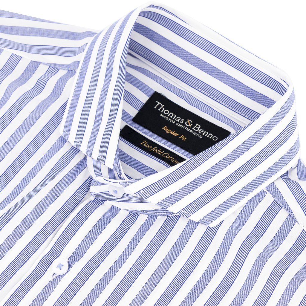 This navy woven stripe shirt from Thomas & Benno blends classic tailoring with everyday practicality. Made from 100% cotton, it features a full cutaway collar with removable stays and single cuffs for a clean, versatile look. The regular fit offers ease of movement, while French seams and side gussets reinforce the shirt’s structure and longevity. Machine washable at 30 degrees. For best results, iron while damp.