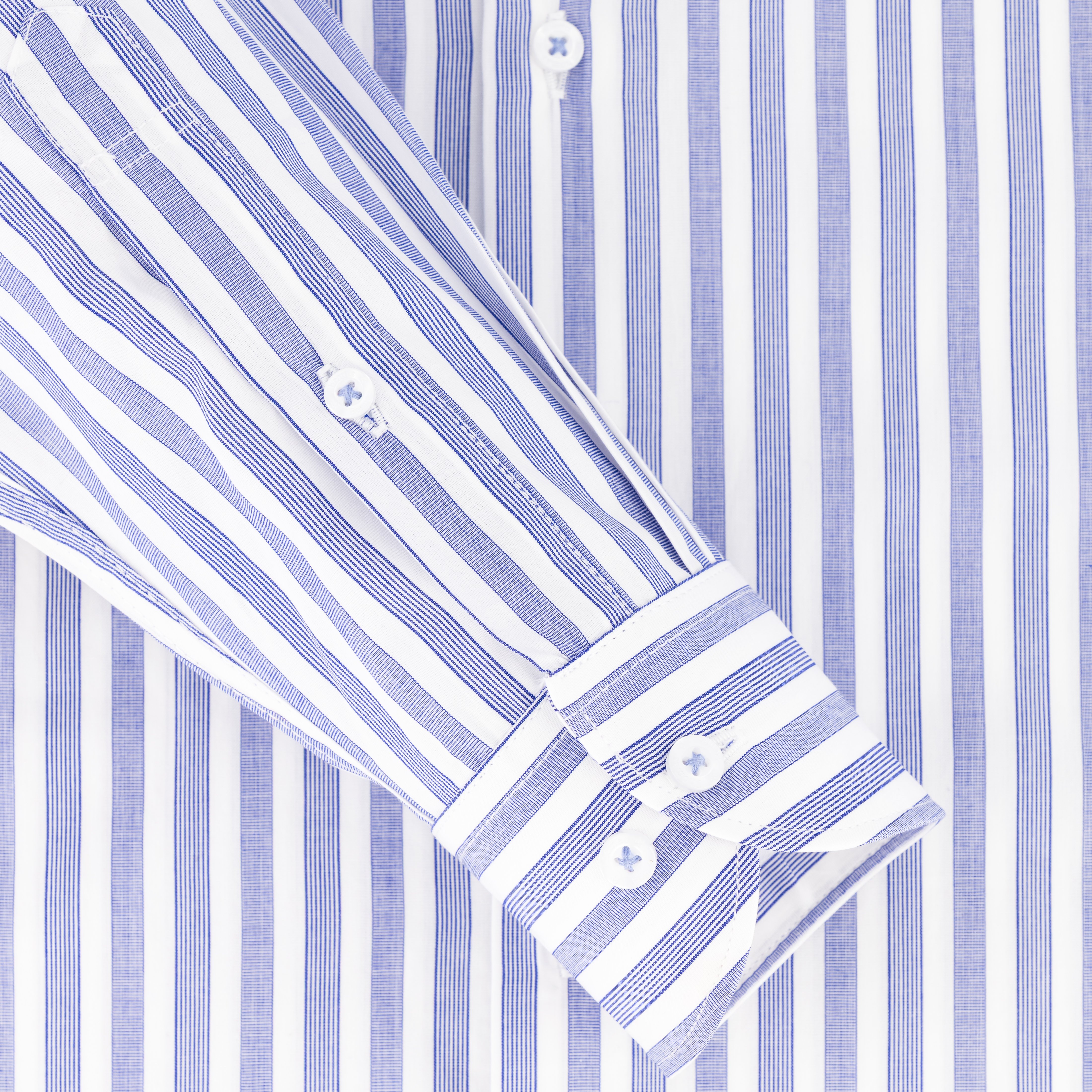 Navy Woven Stripe Single Cuff Shirt | Regular Fit