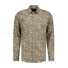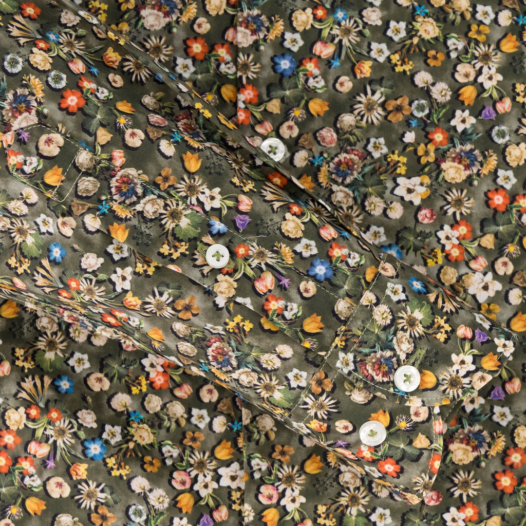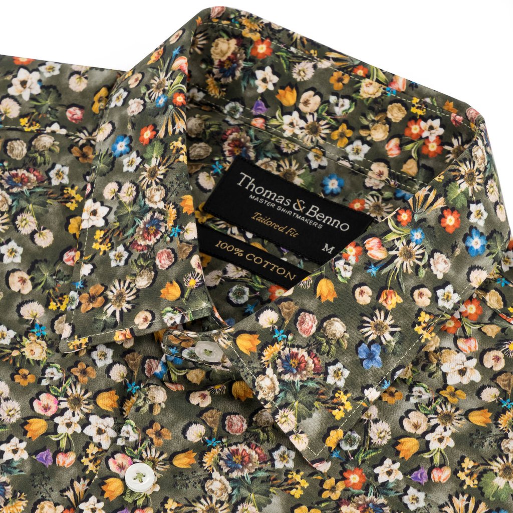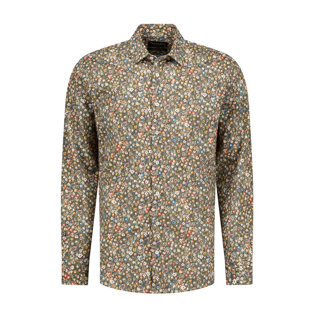 Olive Floral Print Cotton Shirt | Tailored Fit