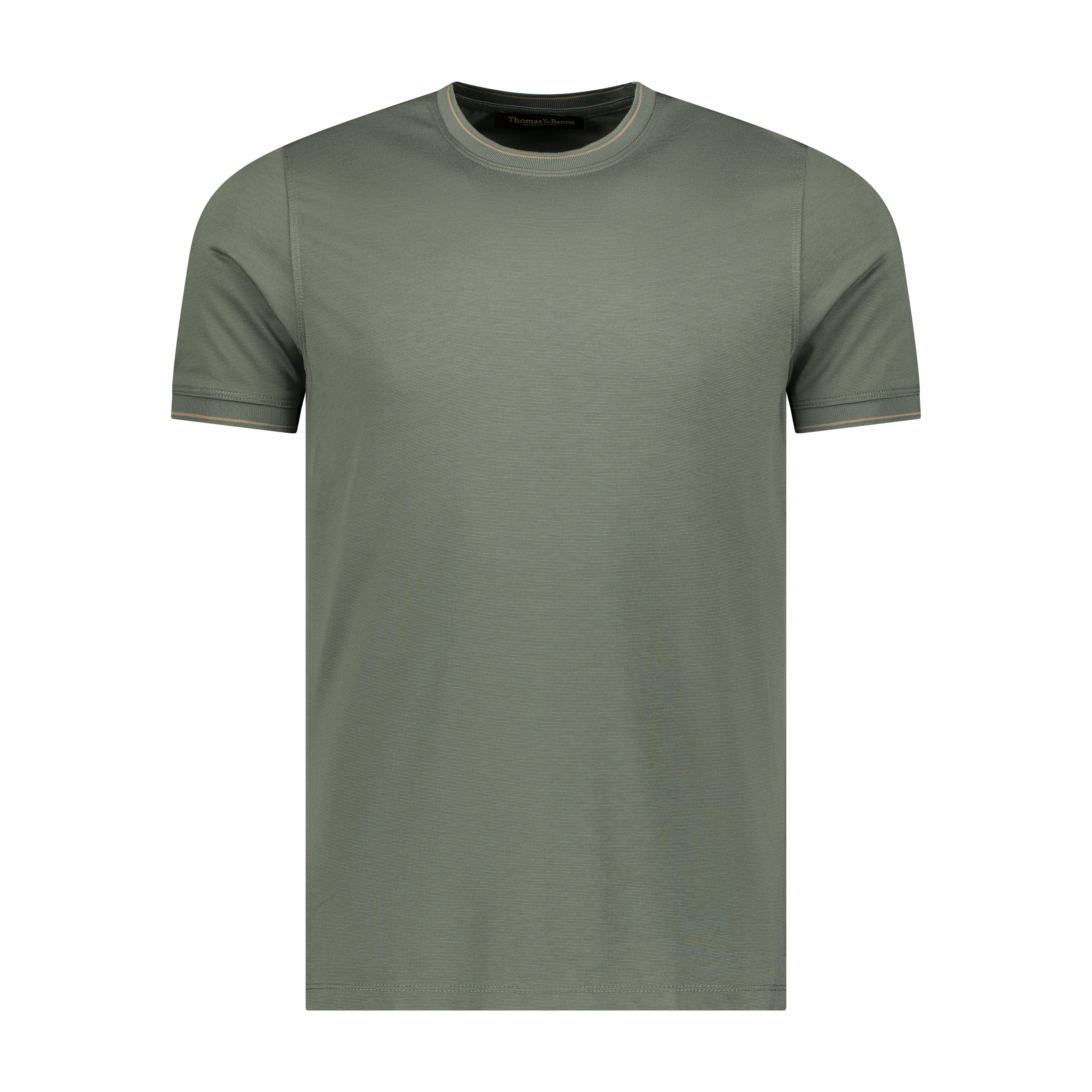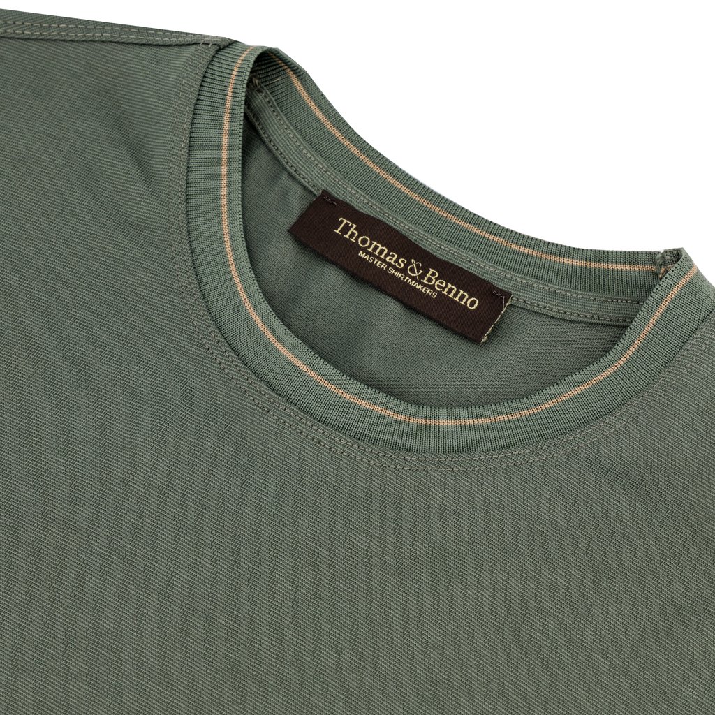 - Contrast‑striped ribbed neckline featuring warm sand accent tones