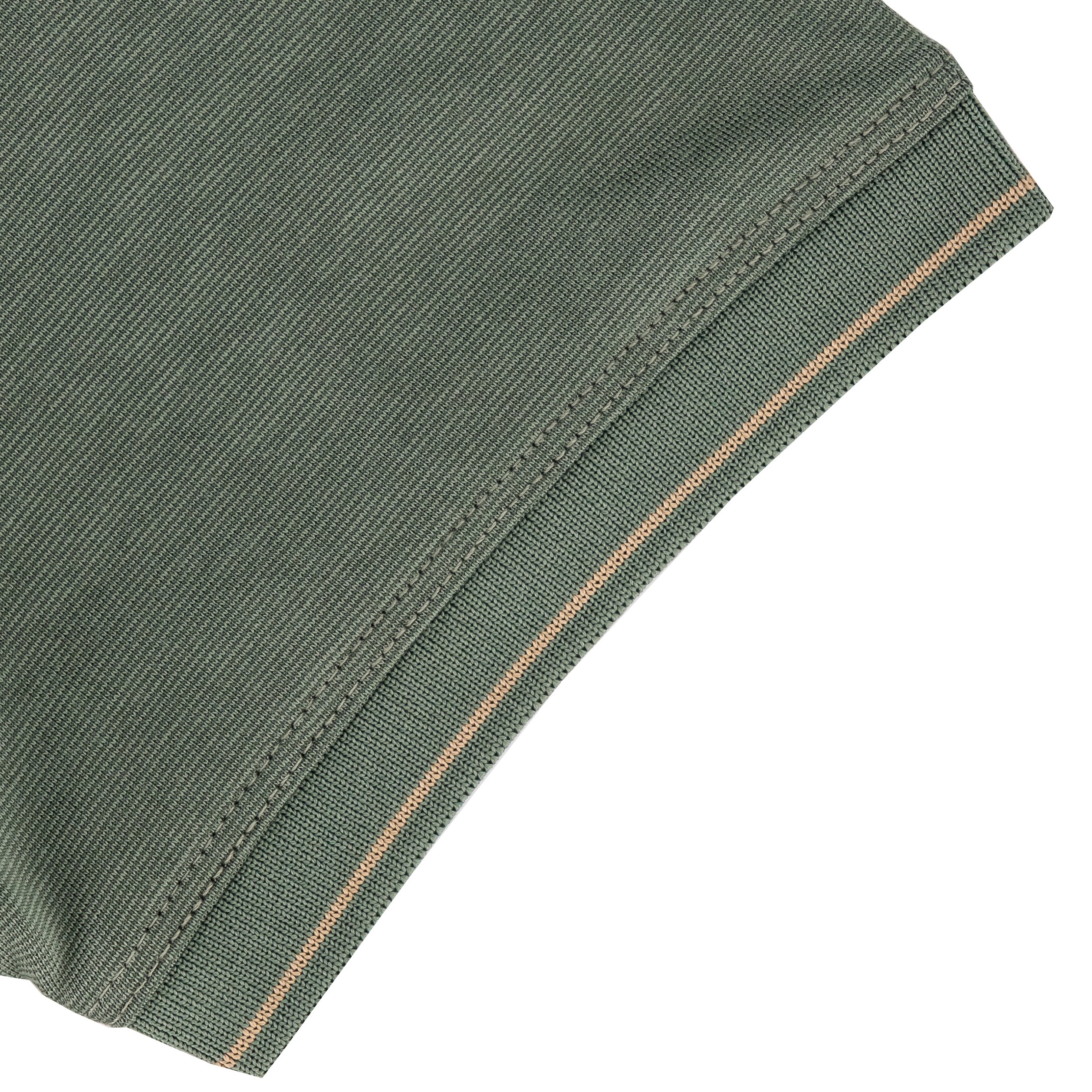 - Matching striped sleeve hems for a coordinated premium detail