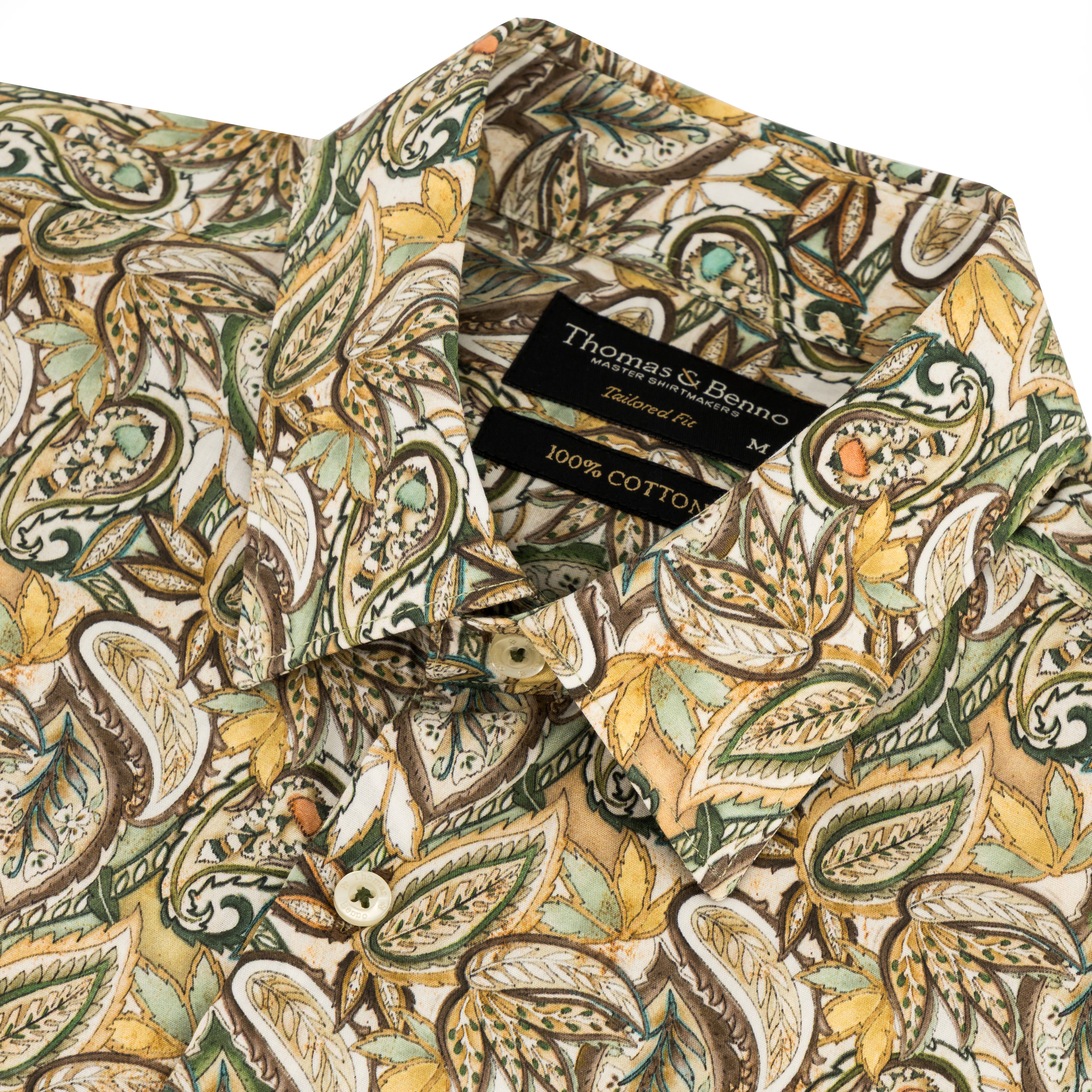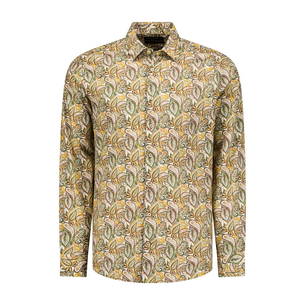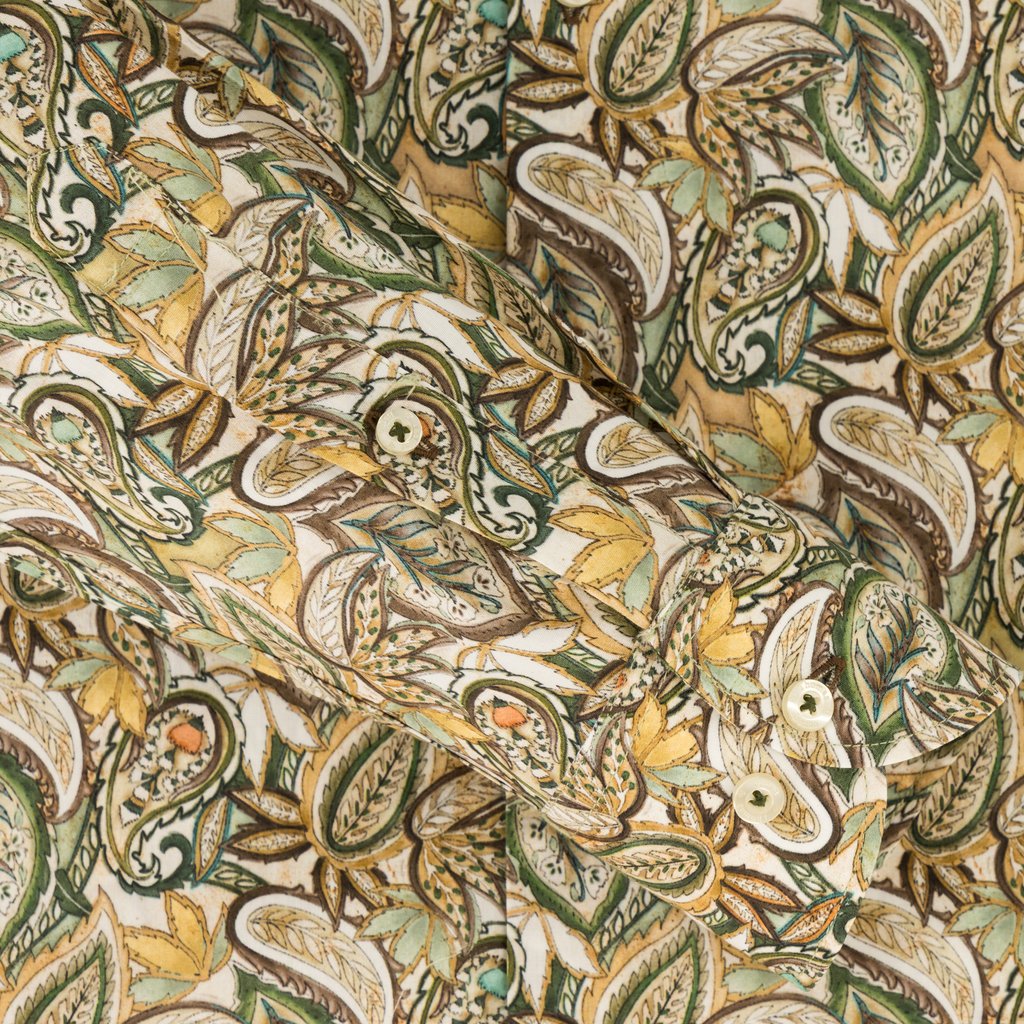 Paisley Fern Print Cotton Dress Shirt in Green and Yellow | Tailored Fit
