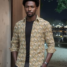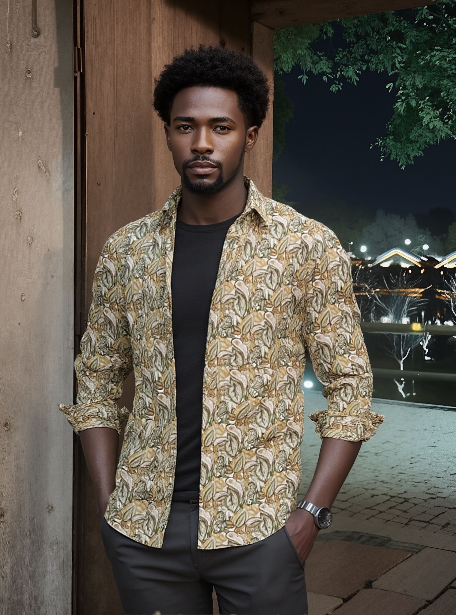 Introducing our Men’s Tailored Paisley Fern Print Cotton Dress Shirt in Green and Yellow, a sophisticated addition to the discerning gentleman’s wardrobe. Crafted from 100% premium cotton, this shirt combines breathability with a luxurious hand-feel. The bold green and yellow paisley fern print exudes individuality, while the tailored fit and semi cut-away collar with removable collar bones offer a modern, versatile style suitable for both formal and semi-formal occasions. Designed with French side seams and armholes for superior comfort and durability, along with side gussets to preserve its impeccable structure, this shirt effortlessly blends timeless craftsmanship with contemporary flair. Perfect for those who seek to make a refined statement.