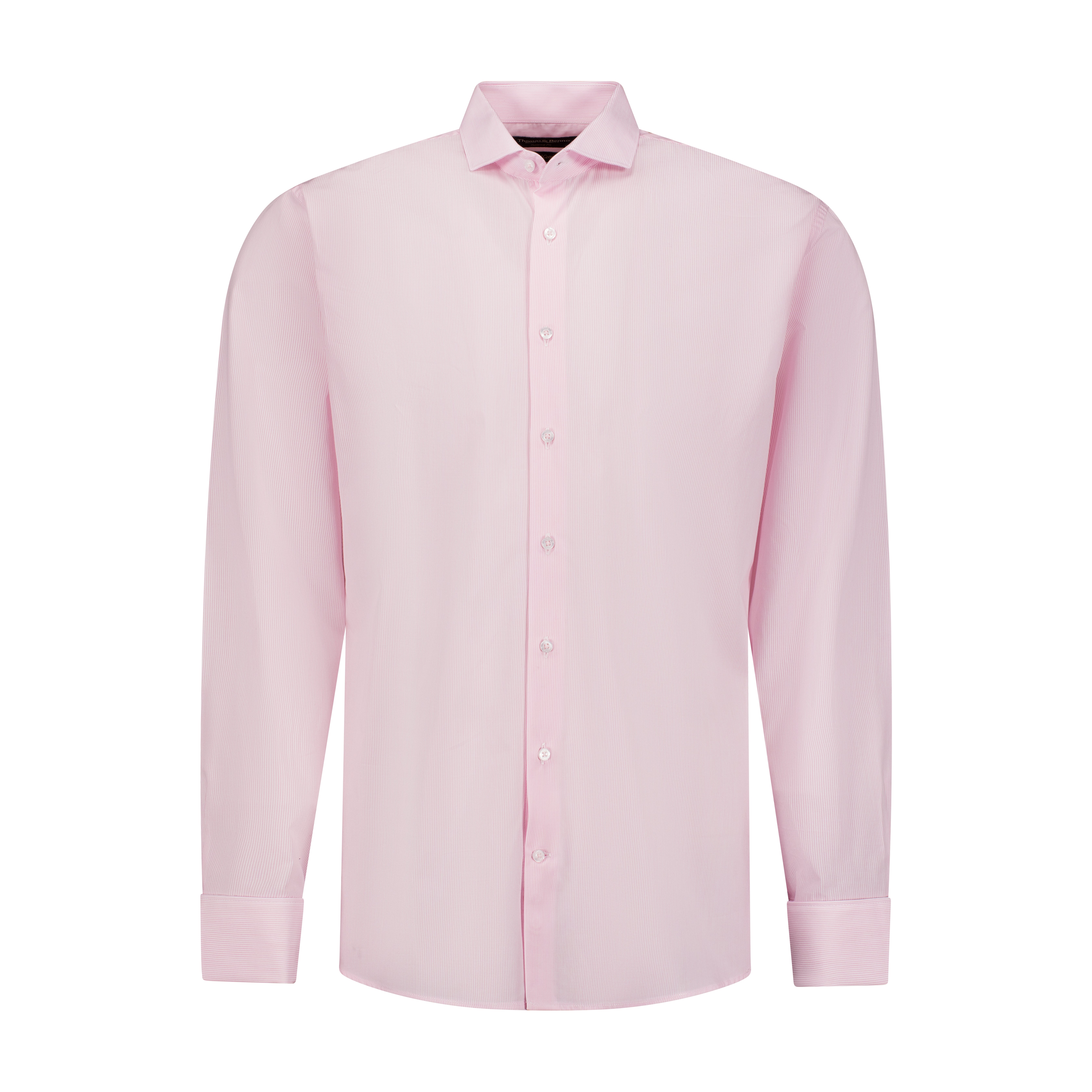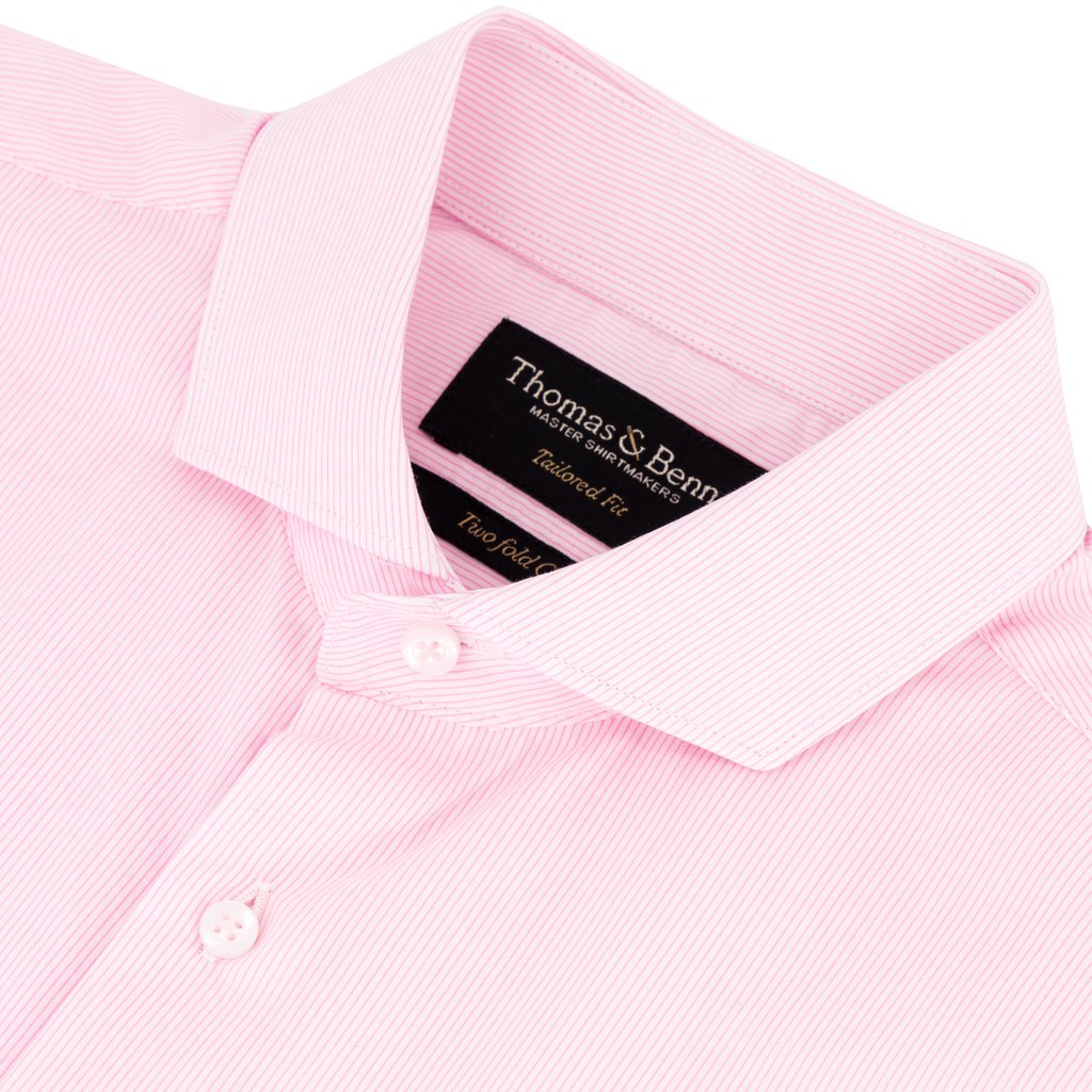 This refined pink hairline stripe shirt from Thomas & Benno is crafted from 100% cotton for a crisp, breathable feel. The full cutaway collar with removable stays and double cuffs add a sophisticated edge, while the tailored fit ensures a clean, modern profile. French seams and side gussets reinforce the shirt’s structure and longevity. Machine washable at 30 degrees. For best results, iron while damp.