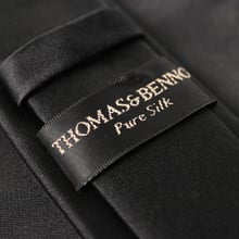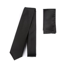 Plain satin finish silk tie, with a matching pocket square.