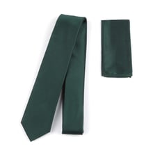 Plain satin finish silk tie, with a matching pocket square.