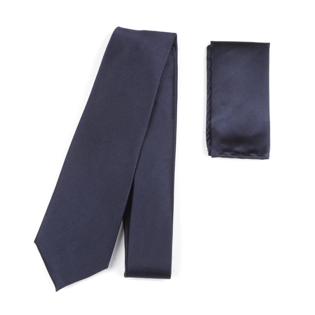 Plain satin finish silk tie, with a matching pocket square.