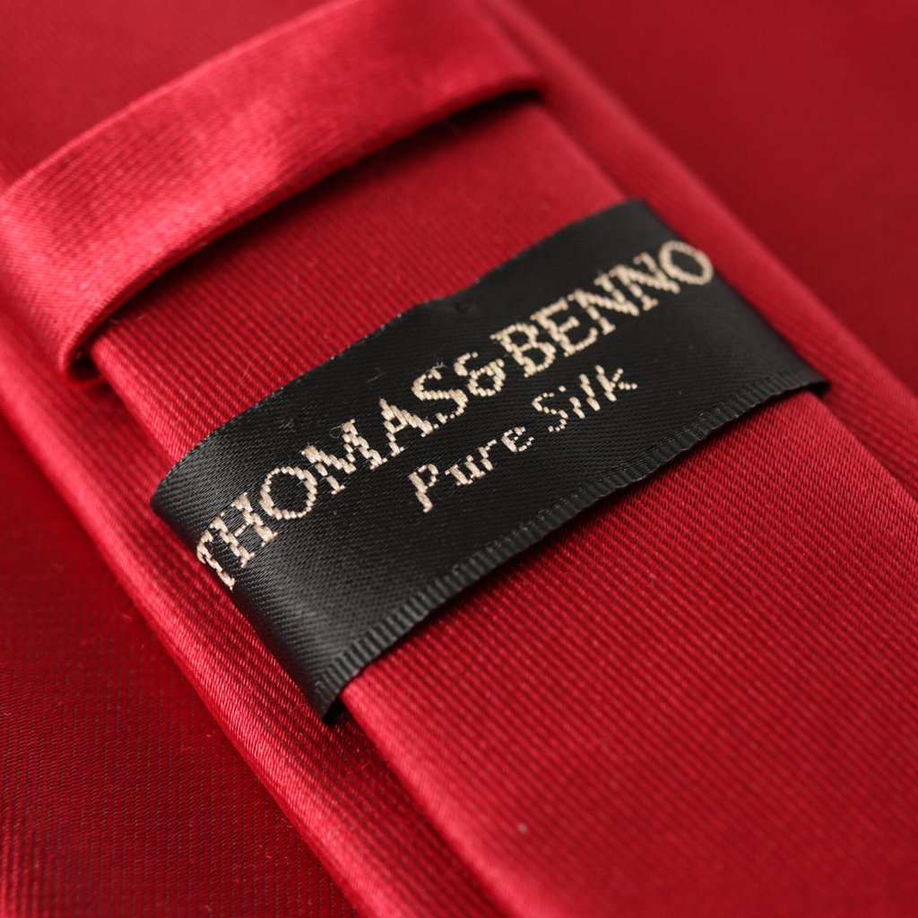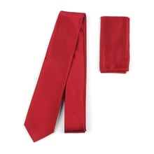 Plain satin finish silk tie, with a matching pocket square.