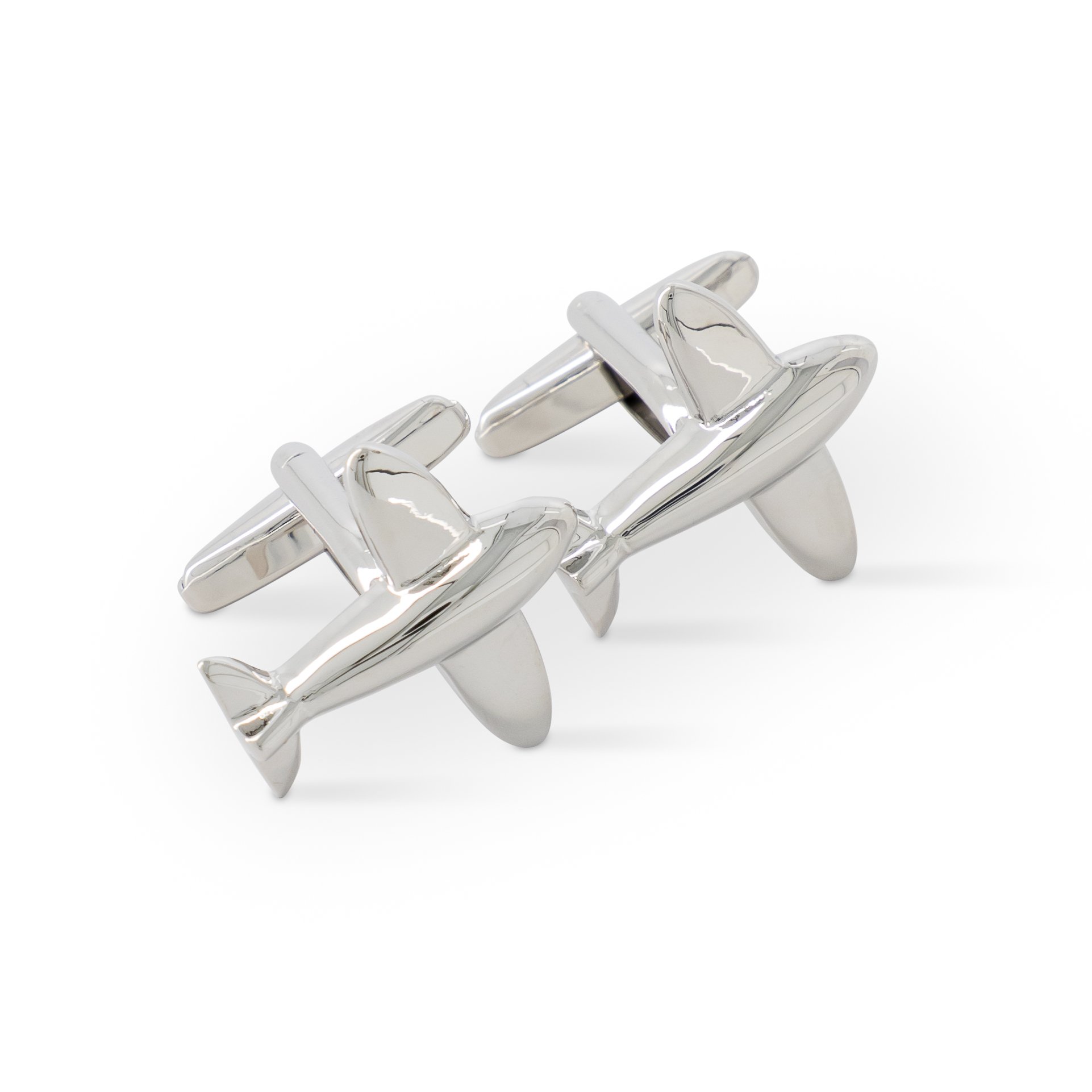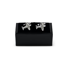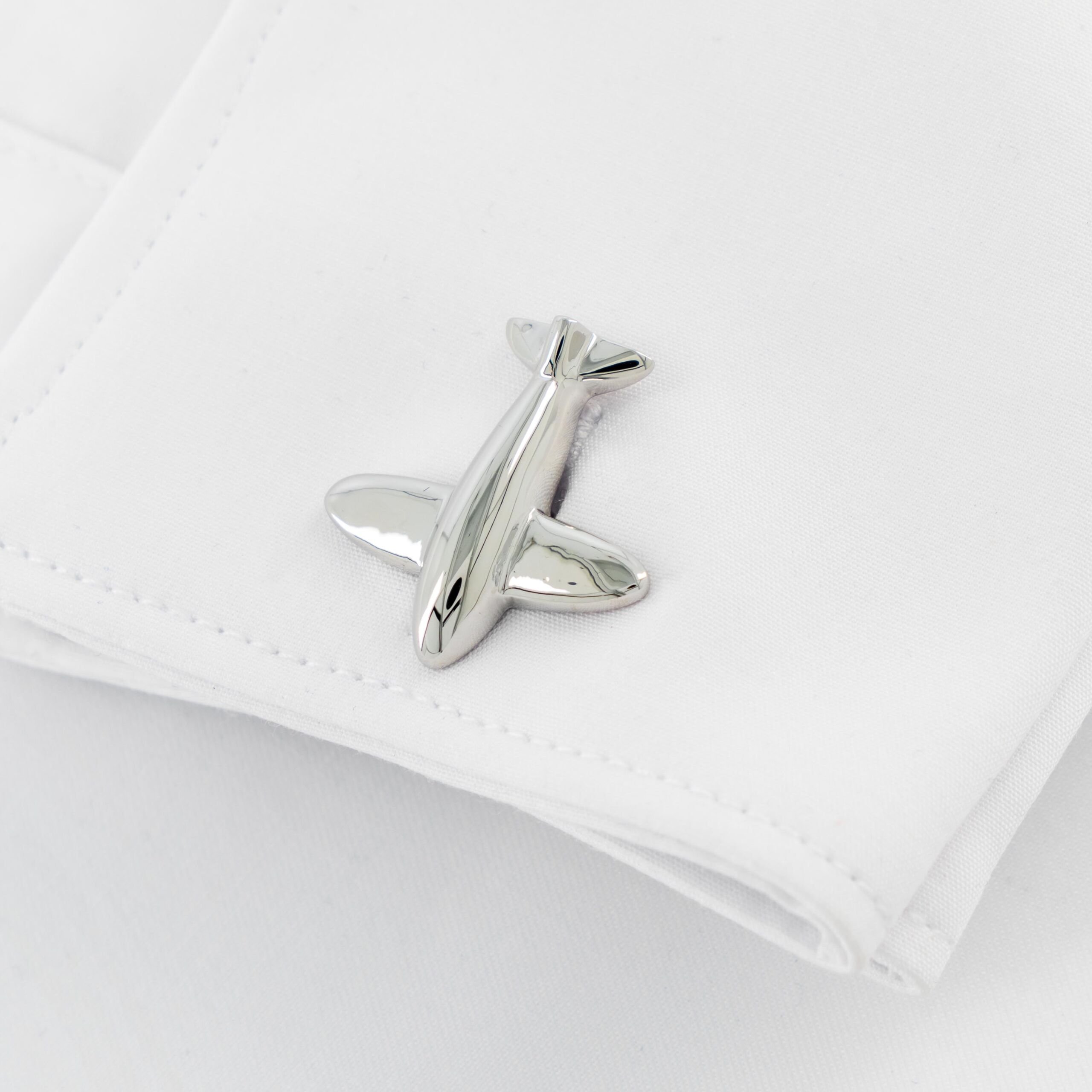 These unique cufflinks feature a sleek aeroplane design, crafted with a polished silver finish for a luxurious look. The sturdy bullet clip ensures a secure hold, while the rhodium plated alloy adds a touch of sophistication. These cufflinks come in a premium box, making them an ideal gift for the aviation enthusiast.