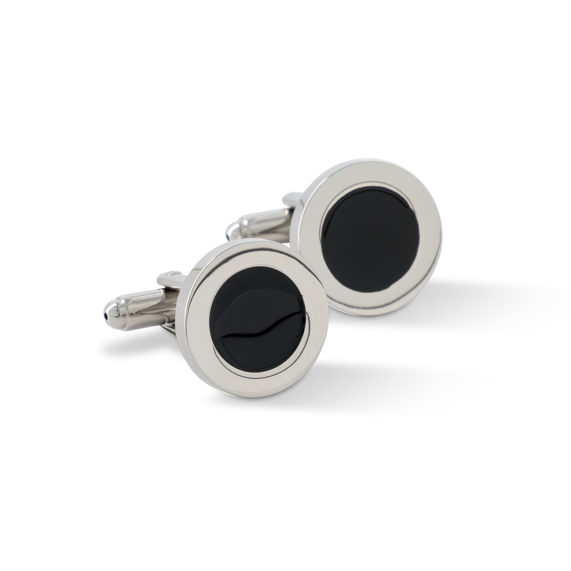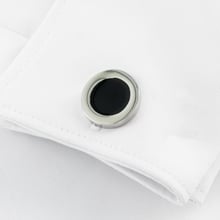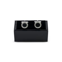These cufflinks feature a porthole design with a polished silver frame and a black enamel inlay, adding a touch of sophistication and elegance to any formal outfit. The sturdy bullet clip ensures a secure hold, while the rhodium plated alloy construction provides a durable and luxurious look. Presented in a premium gift box, these cufflinks make a perfect accessory for the discerning gentleman.