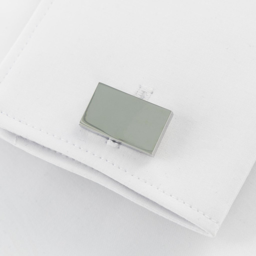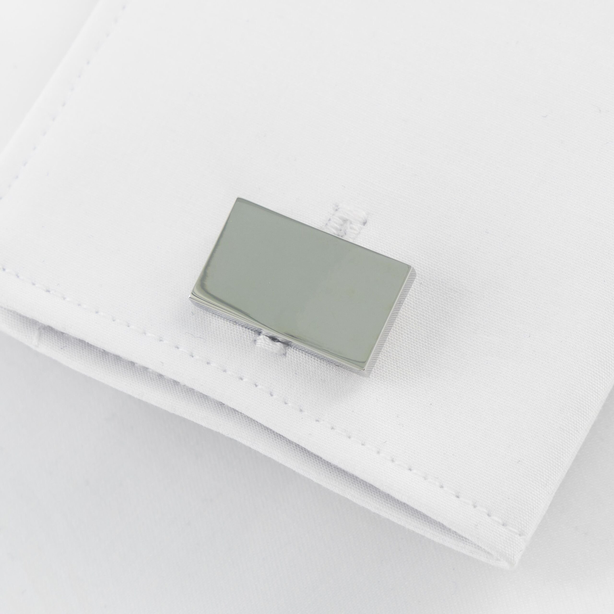 These classic cufflinks feature a rectangular shape with a polished silver finish, adding a touch of sophistication to any formal attire. The sturdy bullet clip ensures a secure hold, while the rhodium plated alloy construction provides a durable and elegant look. Presented in a premium gift box, these cufflinks make an excellent choice for the discerning gentleman.