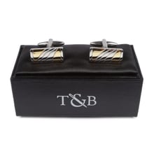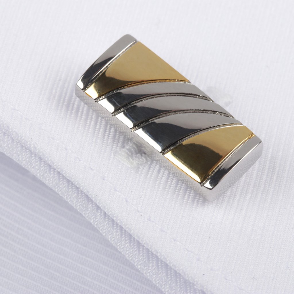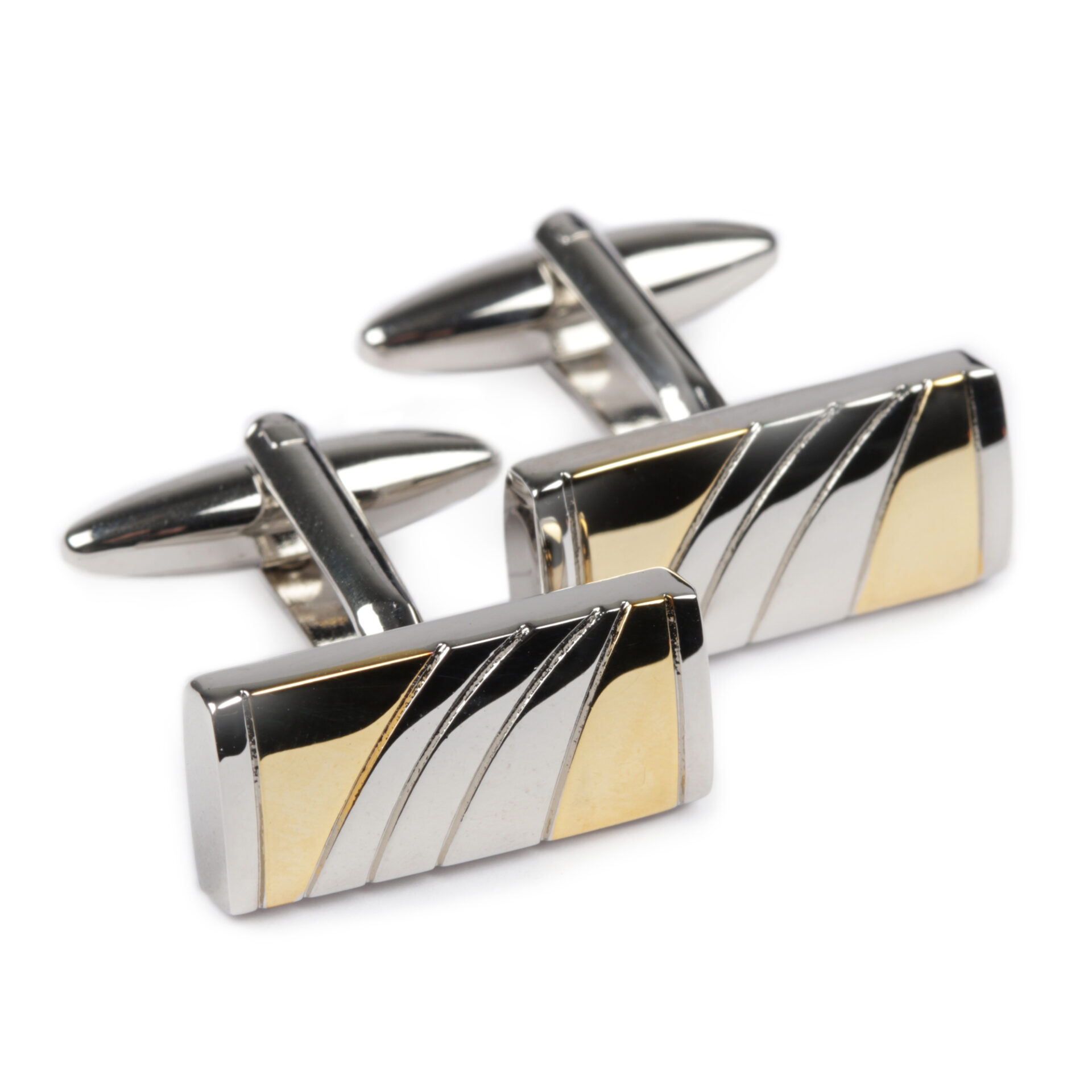 Elevate your formal style with these sleek polished silver rectangular cufflinks, featuring a sophisticated gold inlay accent. A timeless accessory for any occasion.