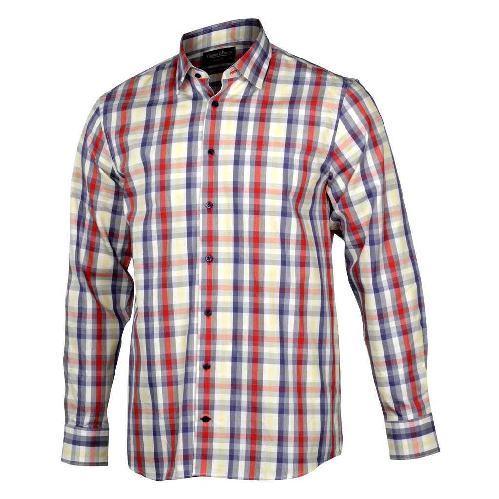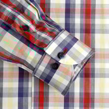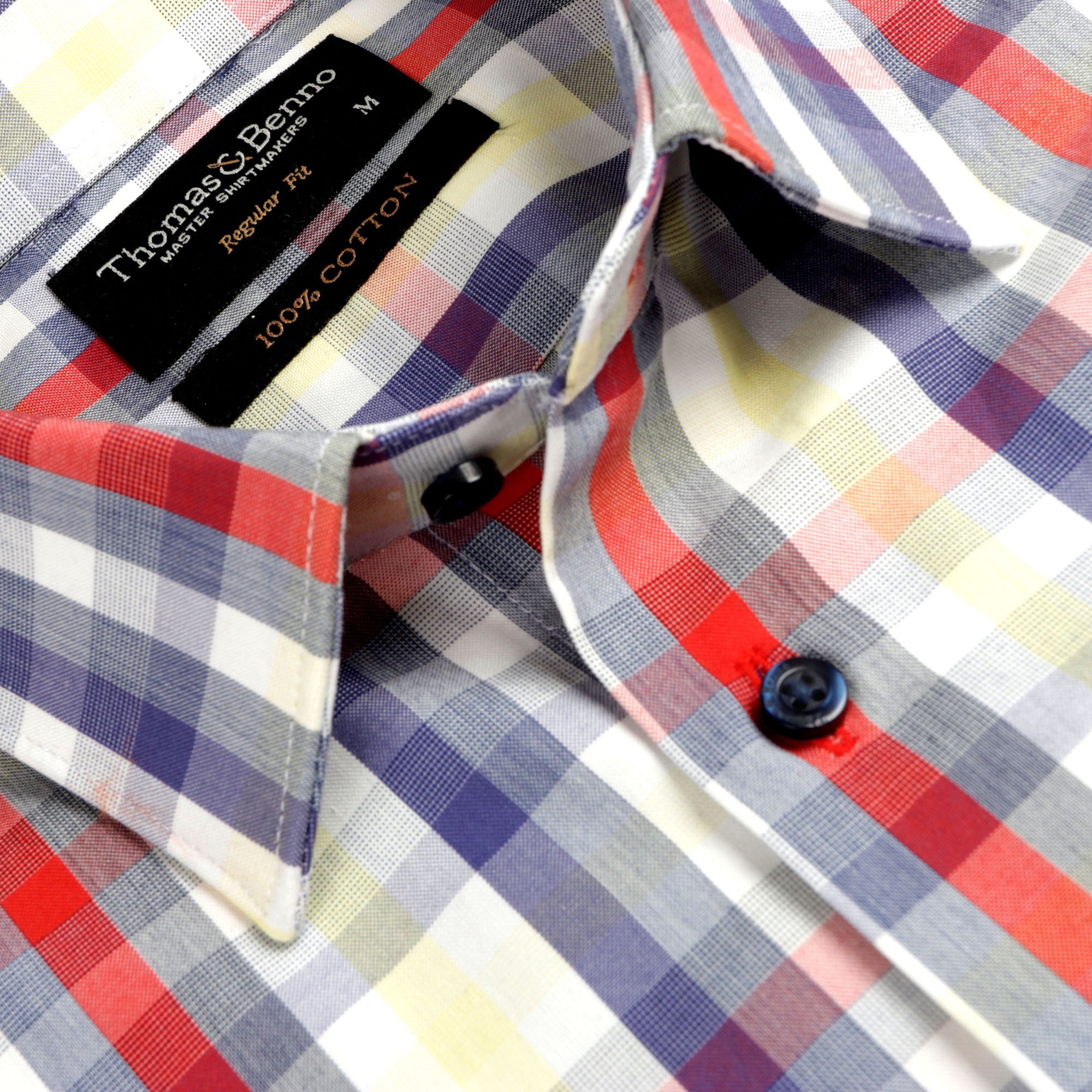 Dress to impress with this classic red and blue madras check shirt! Made with 100% cotton, featuring a semi cut away collar, single cuff, and a regular fit — this shirt is perfect for any occasion. Keep your look sharp with removable collar stays included.