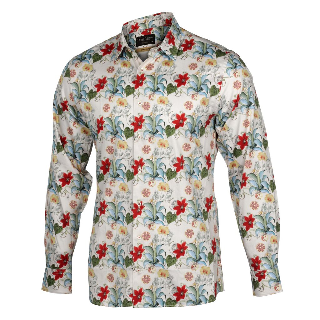 Dress to impress with our vibrant red pentas flower print shirt. This stylish floral shirt features a semi cut away collar and single cuff for a sophisticated look. Designed with a tailored fit, it is made from 100% cotton that is easy to iron and care for. With removable collar stays, this shirt ensures you’ll always look sharp and polished. Perfect for any occasion, this shirt will surely make a statement.