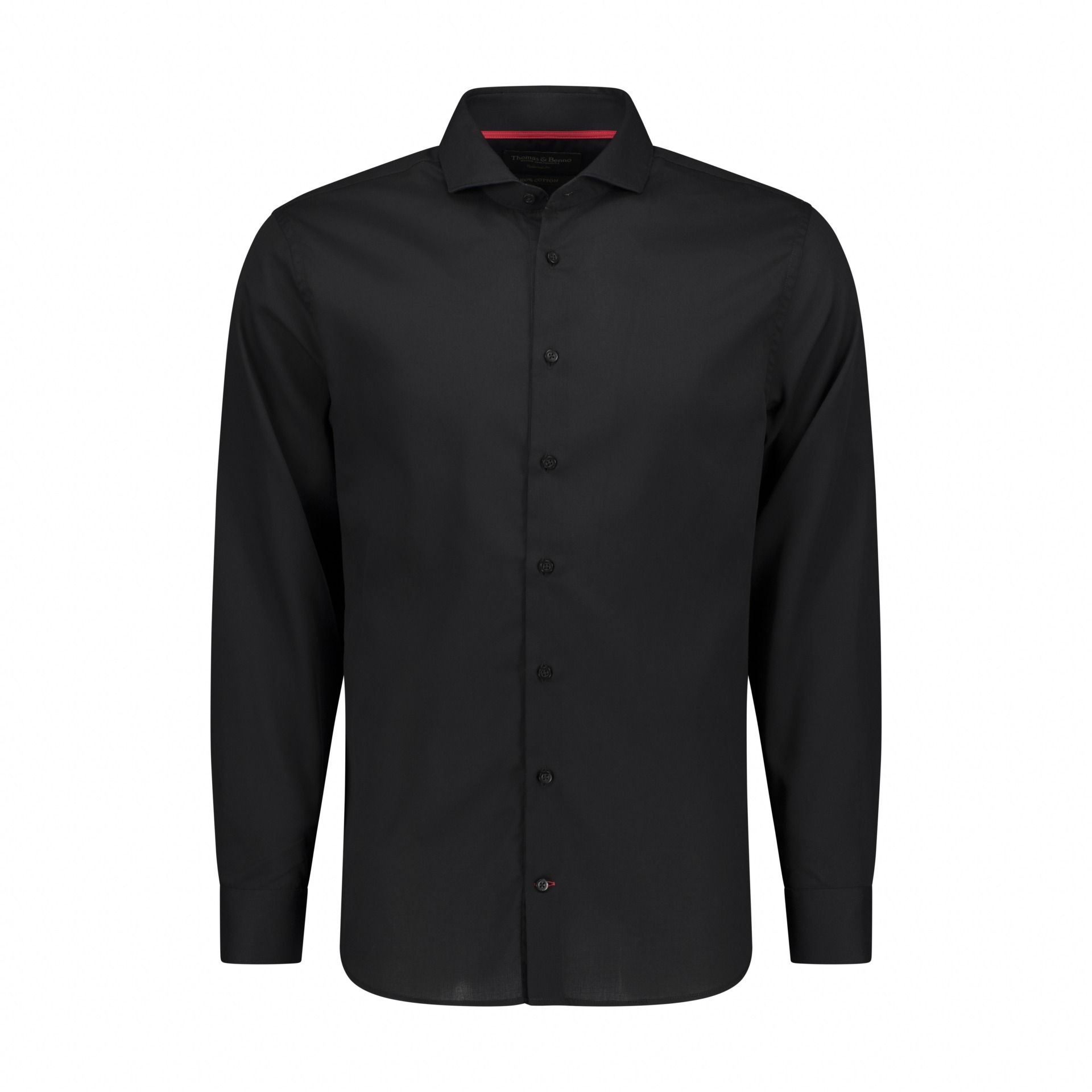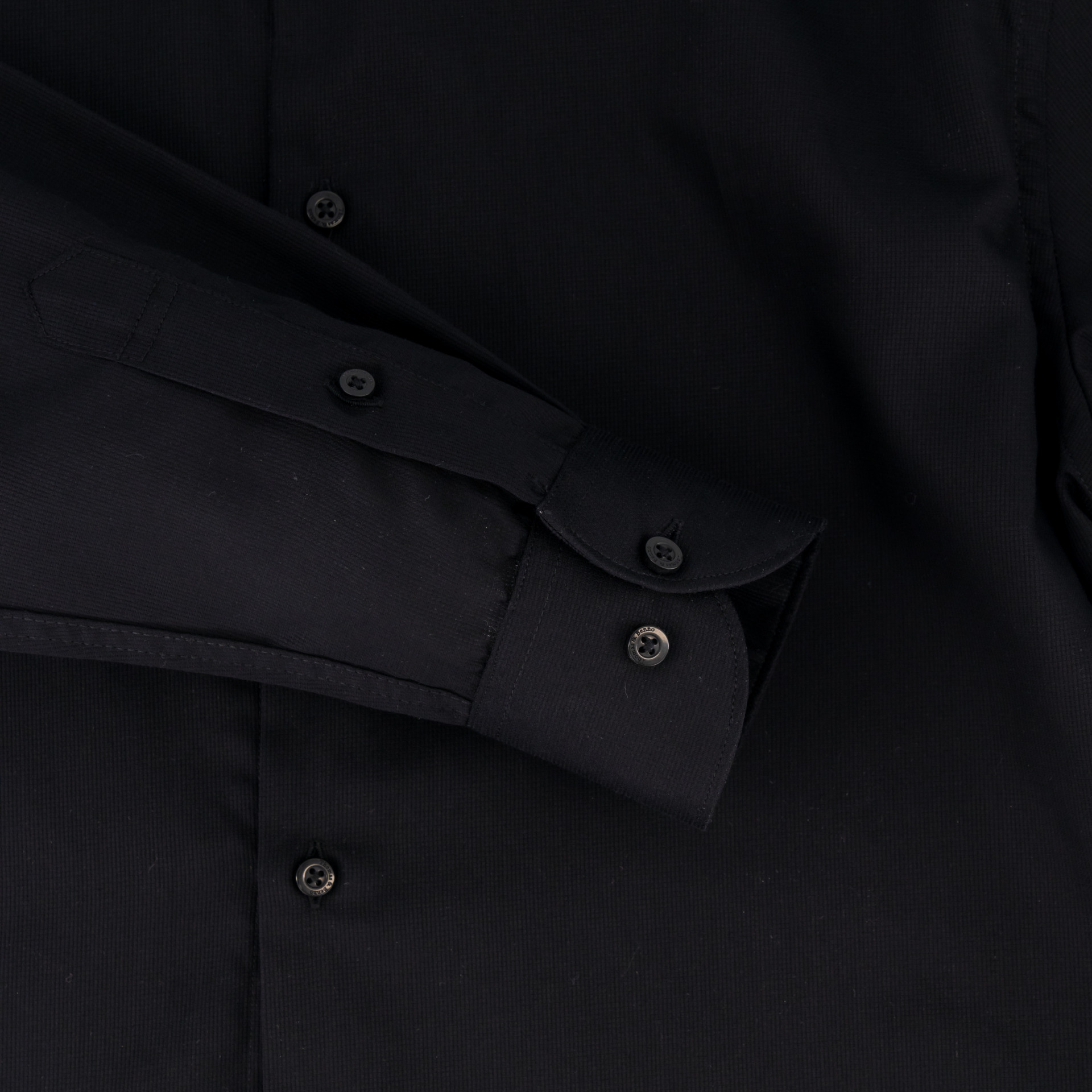 Textured Black Dress Shirt w Red Piping, Full Cut-away Collar & Single Cuffs | Tailored Fit
