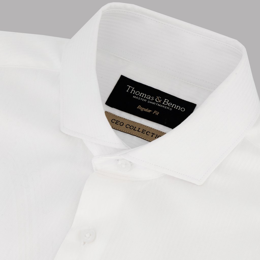 White 140/2 Small Herringbone CEO Collection Shirt | Regular Fit