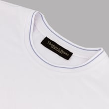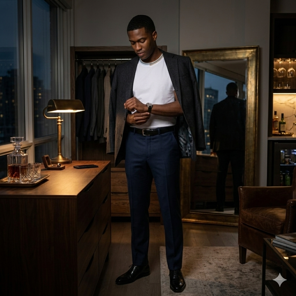 - Coordinated blue‑tipped sleeve hems for a balanced, refined finish