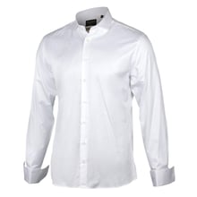 Exude confidence with our white herringbone weave CEO Collection Dress Shirt, tailored to perfection with a full cut away collar and double cuffs. Crafted from 140 double cotton, this shirt offers durability, breathability, and a luxurious feel. Removable collar stays ensure a sharp look, making it an excellent choice for important meetings or special occasions. Experience the ultimate blend of style and comfort.