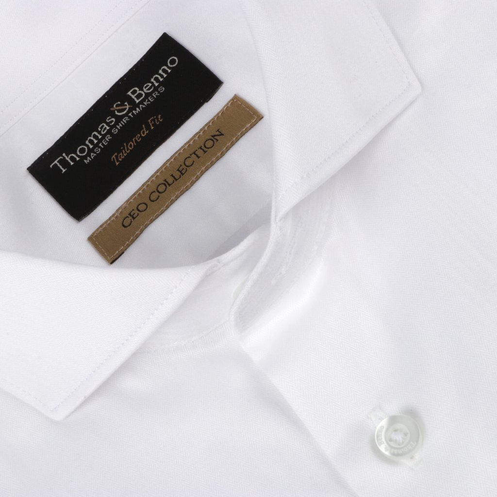 White CEO Herringbone Double Cuff Shirt | Tailored Fit