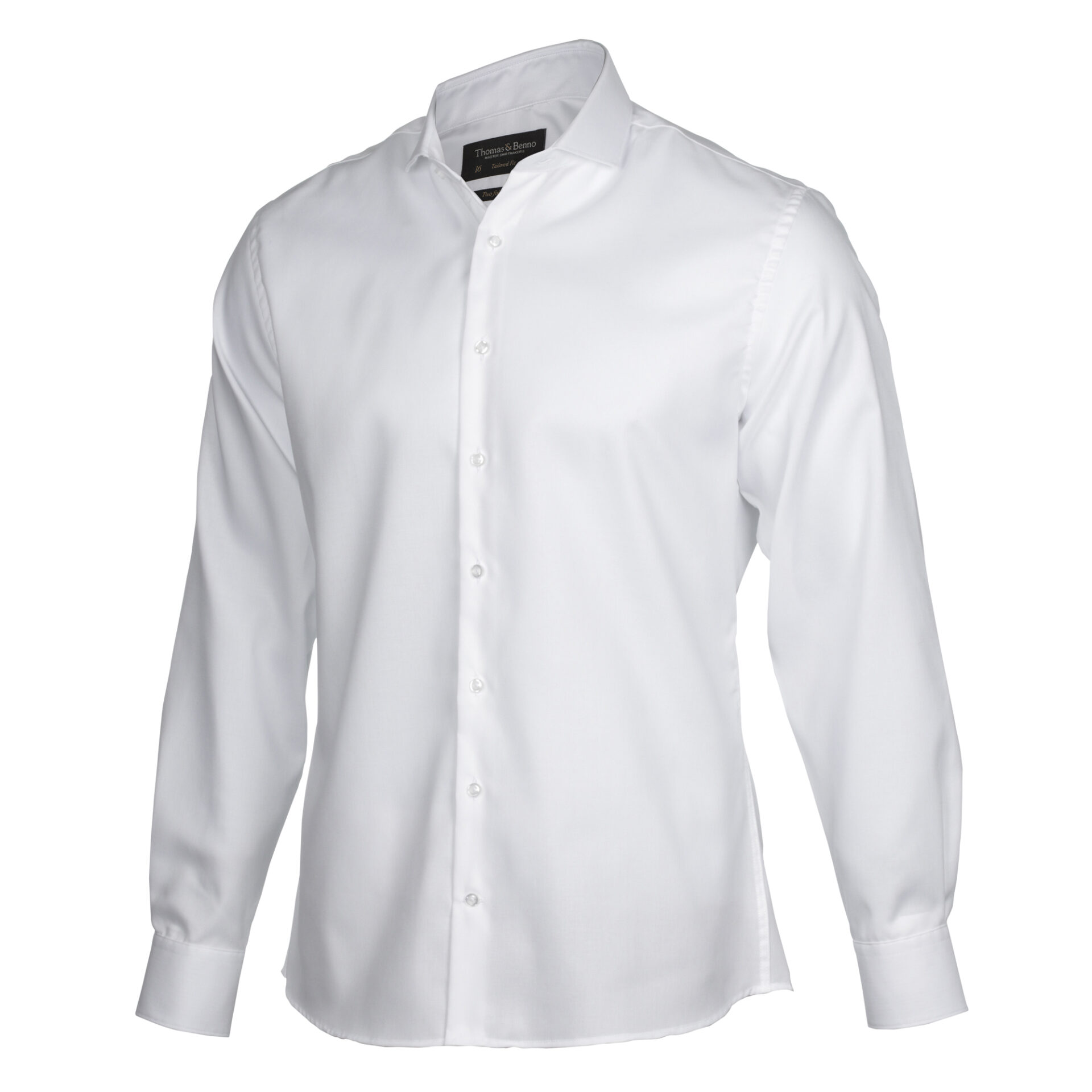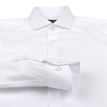 Crafted for the modern gentleman who appreciates timeless style, this formal shirt is a wardrobe essential. Made from 100% cotton fine twill, it features a full cut away collar, single cuffs, and removable collar stays for a sharp look. The tailored fit ensures a comfortable and sophisticated silhouette, making it perfect for any formal occasion. Elevate your outfit with this classic white shirt.