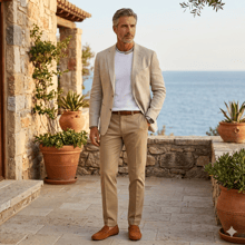 - Matching striped sleeve hems for a coordinated, elevated detail