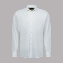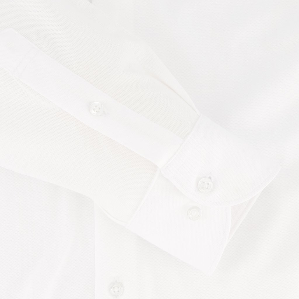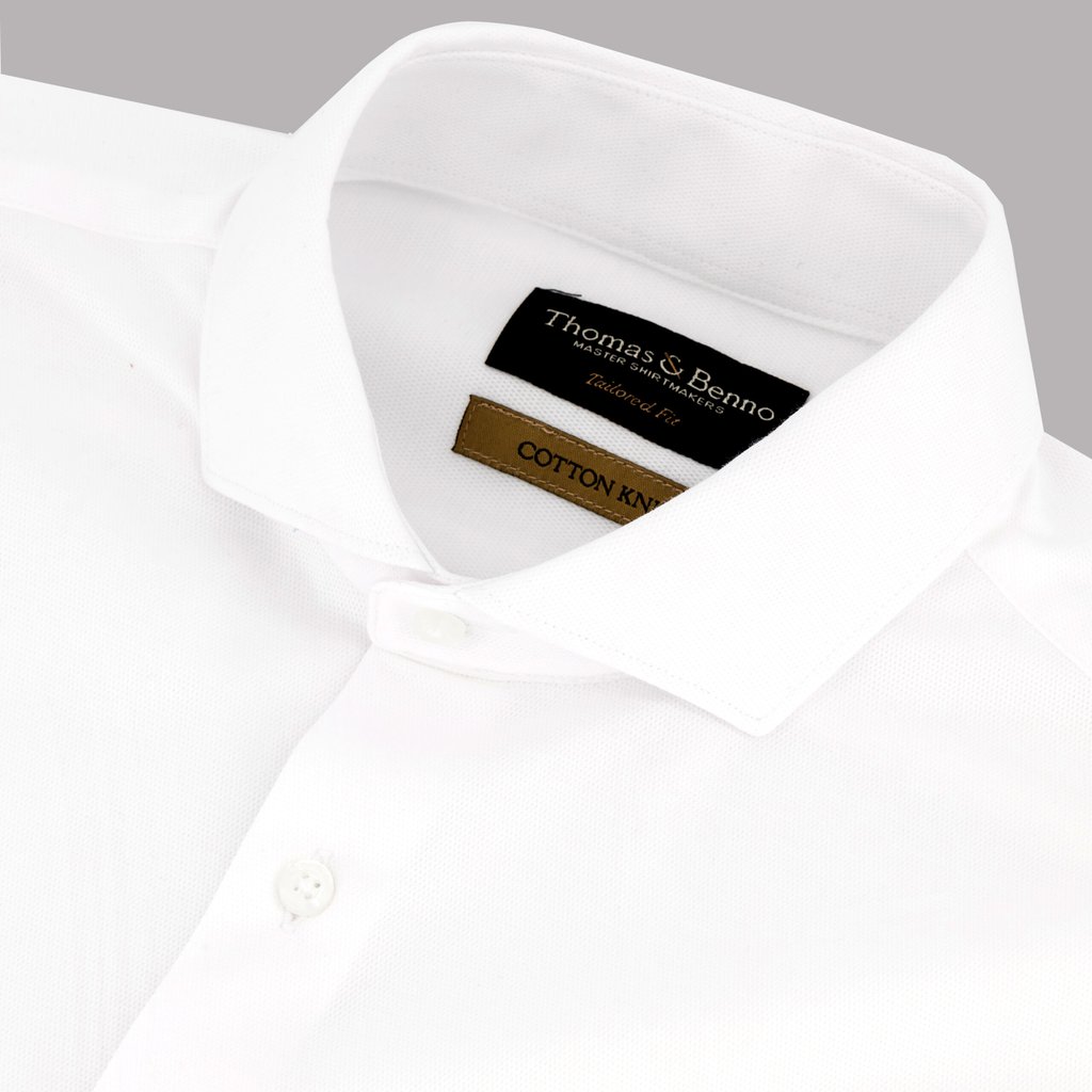 White Structured Cotton Knit Dress Shirt | Tailored Fit