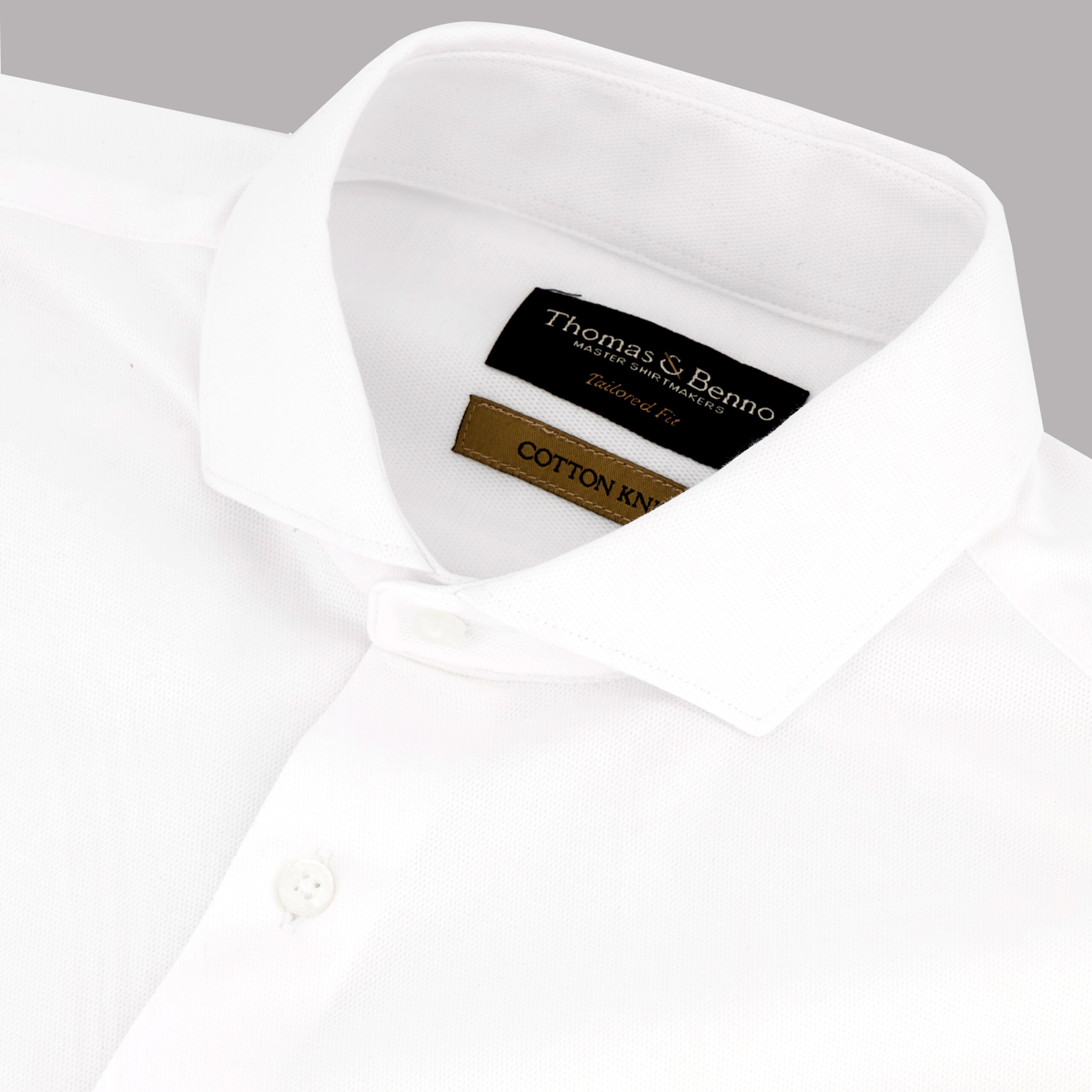 Refine your sophisticated style with our White Structured Cotton Knit Dress Shirt, meticulously crafted for the modern gentleman. Featuring a crisp white structured design, this shirt is made from premium cotton knit fabric that delivers exceptional comfort with superior moisture-wicking and breathability. The full cutaway collar, equipped with removable stays, provides a sharp, contemporary silhouette, complemented by the timeless elegance of single cuffs. Tailored for a perfect fit, this shirt offers stretch and shape retention for all-day wear. Effortless to maintain, it is machine washable up to 30°C and suitable for tumble drying on low heat. Hypoallergenic and impeccably designed, this shirt is an essential addition to any upscale wardrobe.