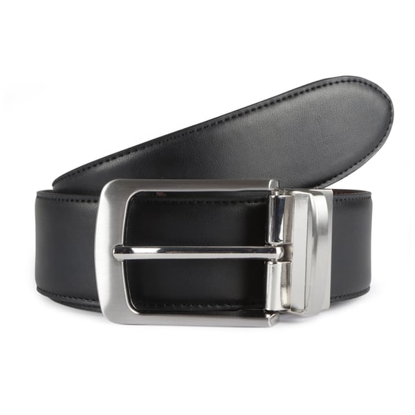 Reversible Twist Natural Leather Belt in Black & Brown with Smooth Edge Silver Twist Buckle