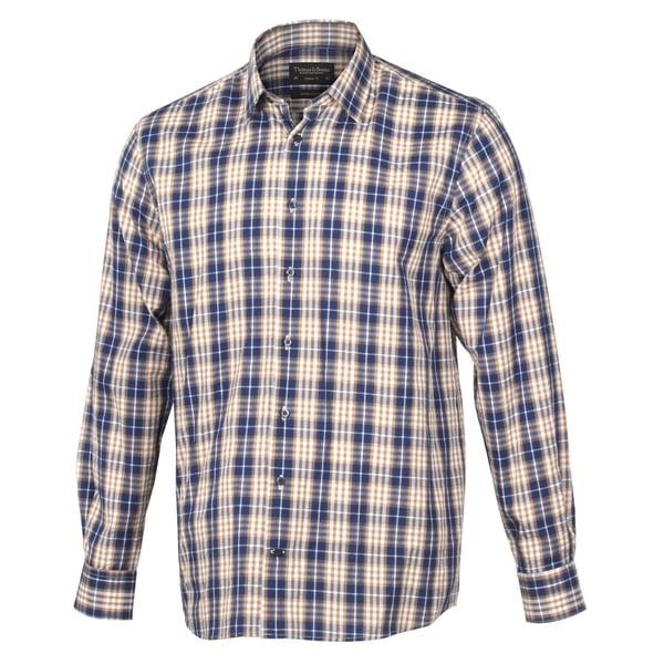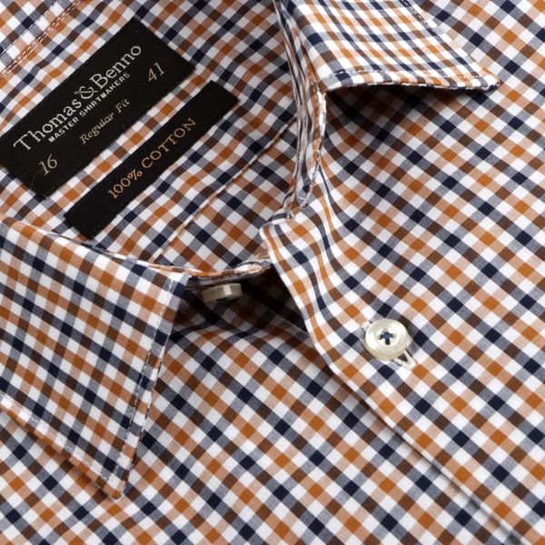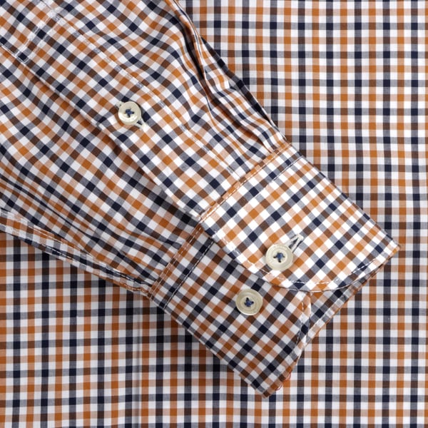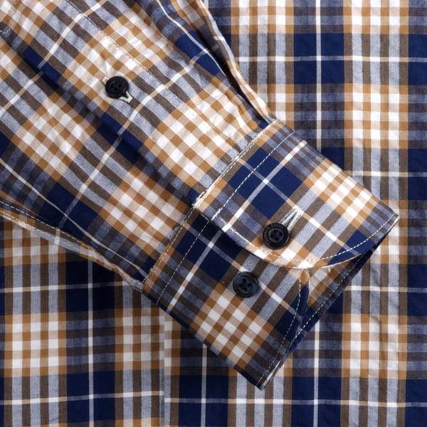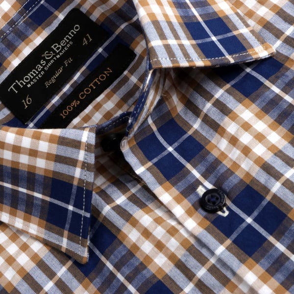 Navy and Brown Check Cotton Shirt | Regular Fit