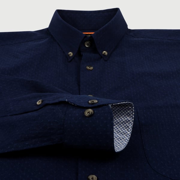 Navy Chambray Diamond Print Dress Shirt | Regular Fit