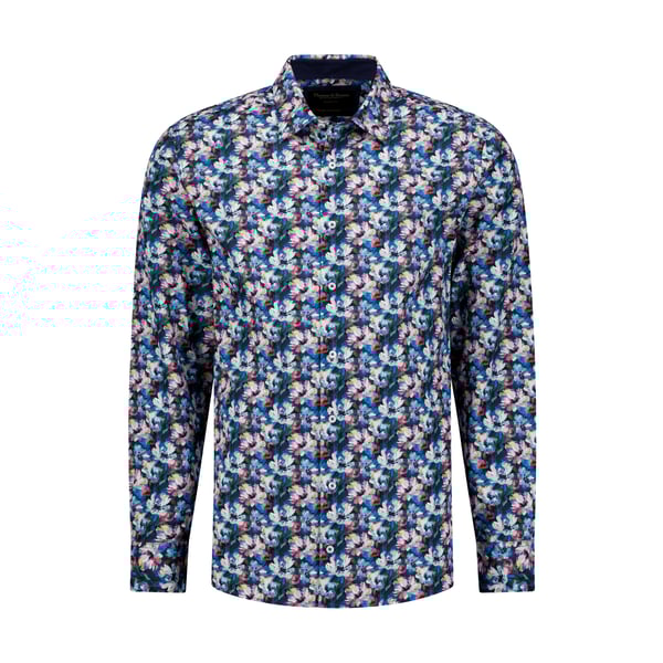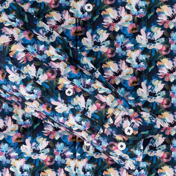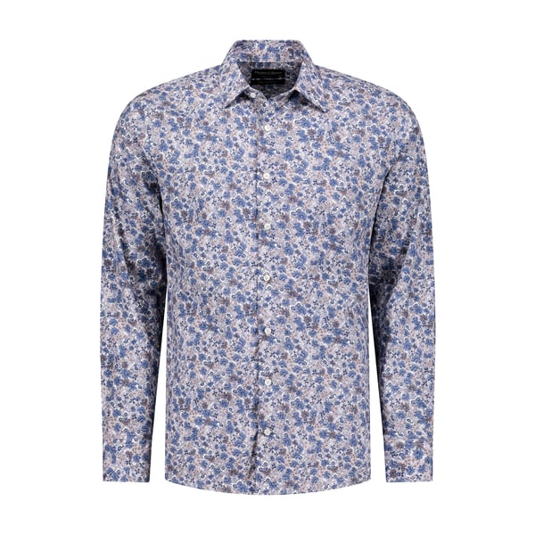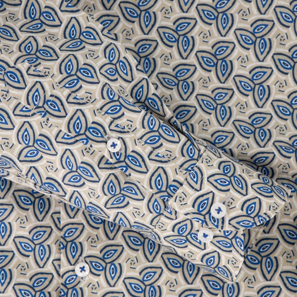 Kensington Blue on Beige Leaf-Print Cotton Dress Shirt | Tailored Fit