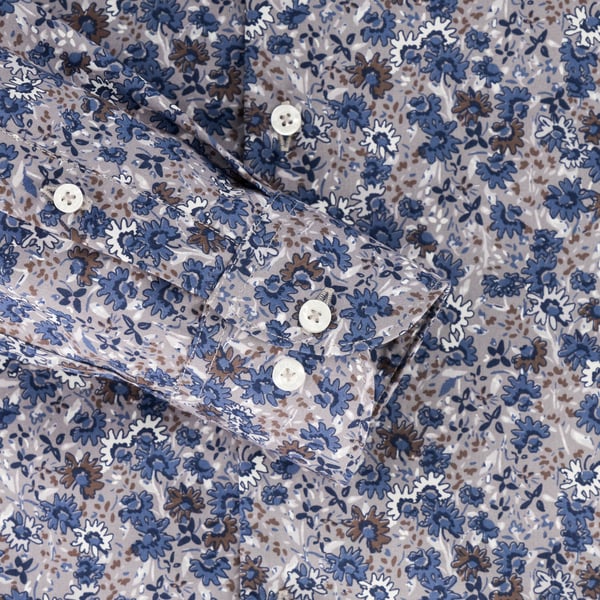 Mayfair Micro-Floral Light Brown Cotton Dress Shirt | Tailored Fit