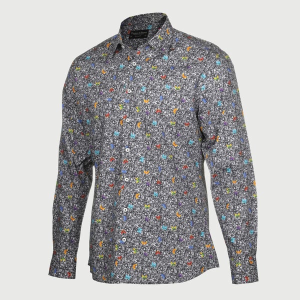 Grey butterfly print cotton shirt