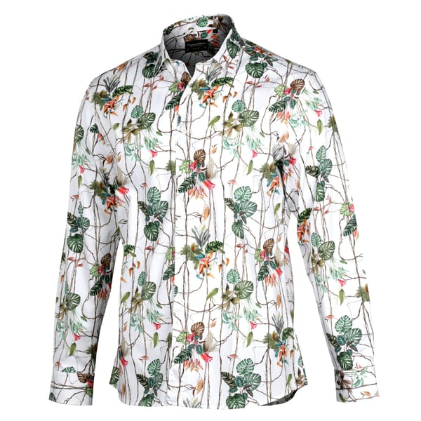 Green fern print linen shirt