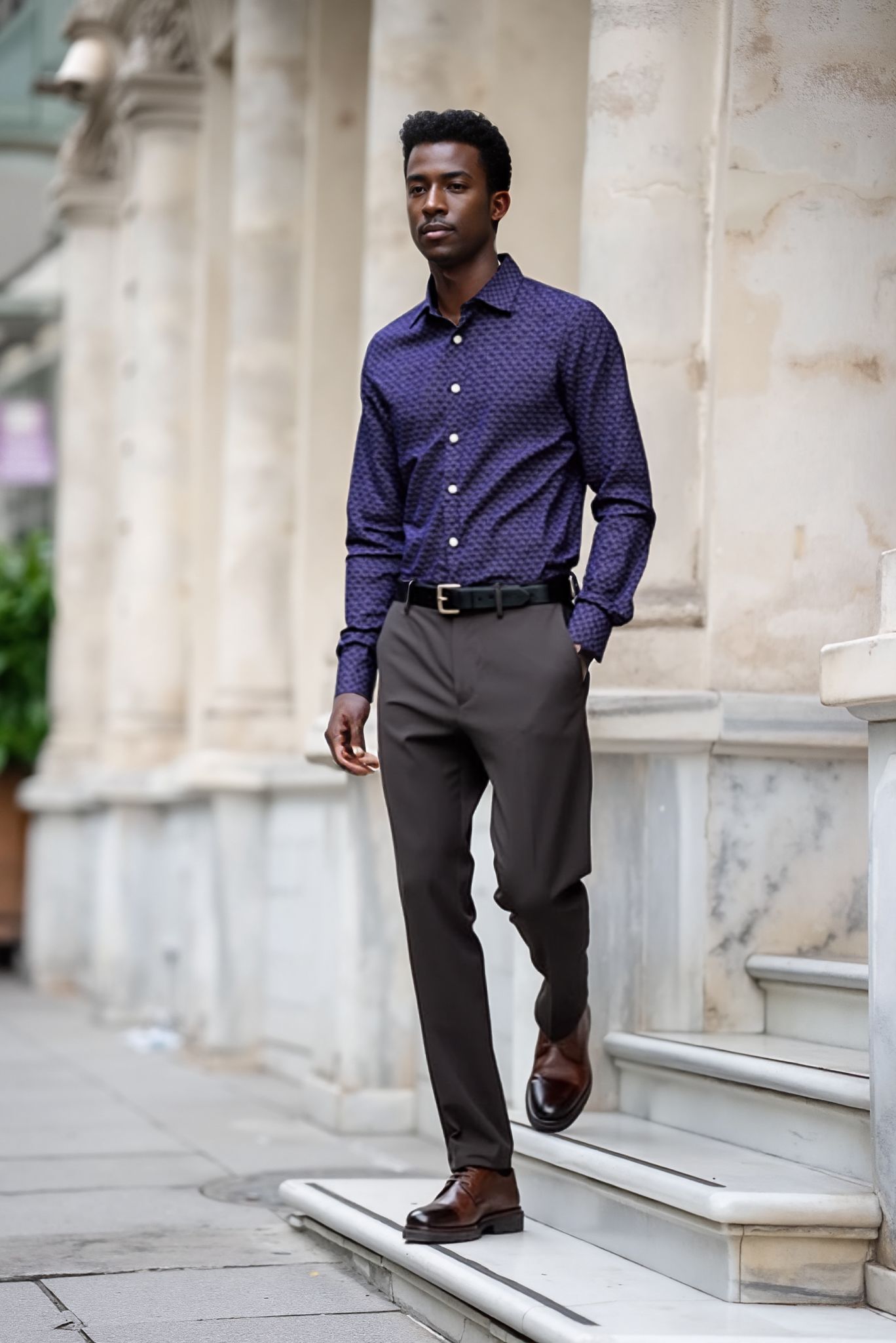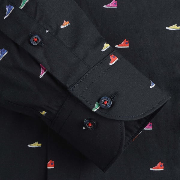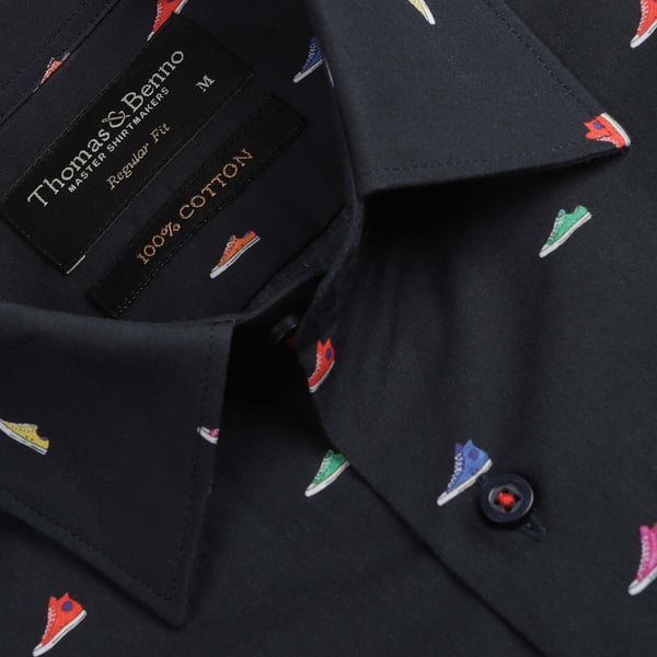 Playful Navy Sneaker Print Dress Shirt | Regular Fit