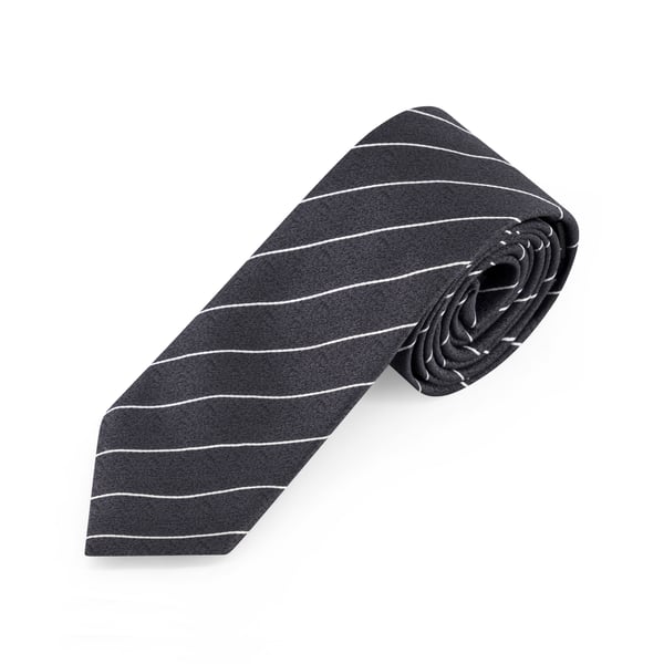 Charcoal Silk Thin White Stripe Tie