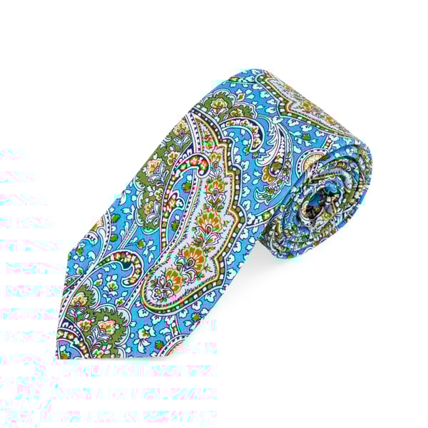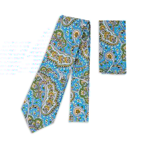 Bright Sky Blue Paisley Tie with Matching Pocket Square